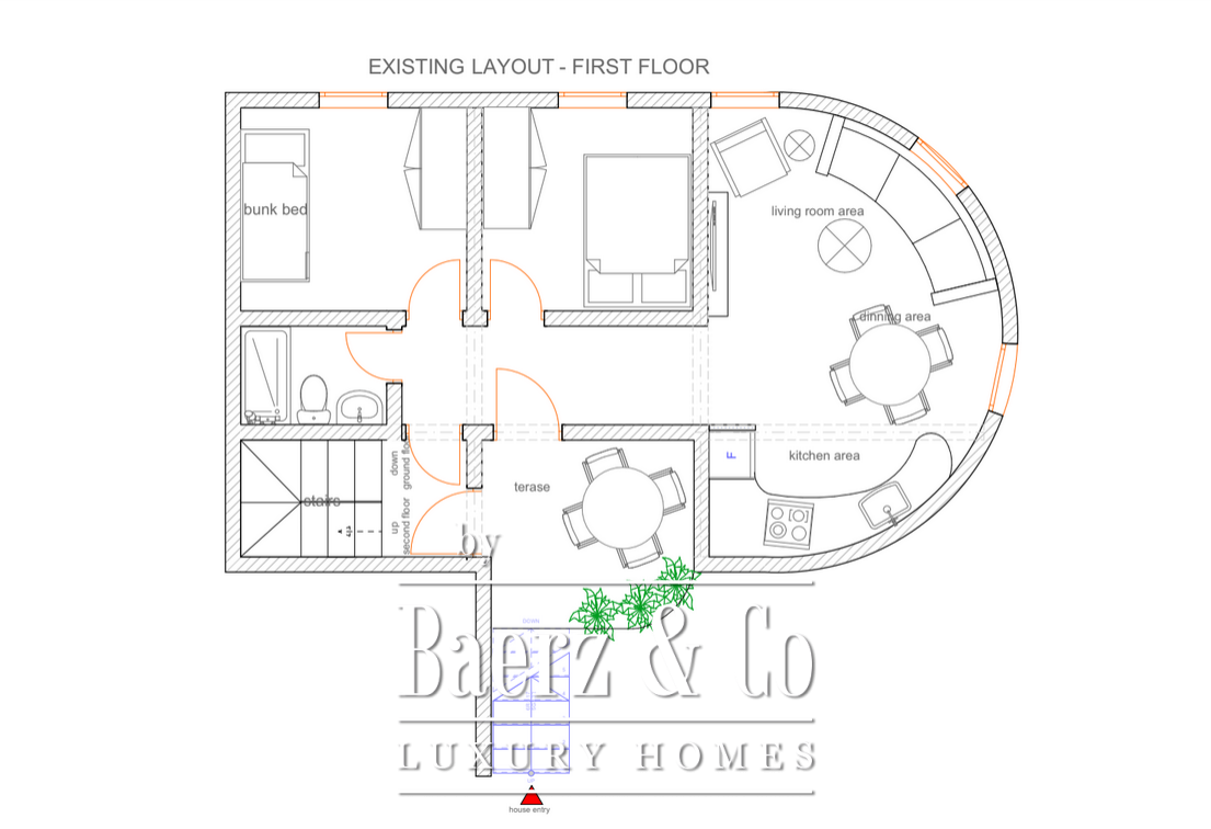 此房屋共三层,每层均为独立公寓,面积50平方米。石砌外立面呼应当地建筑遗产,与周边环境和谐统一。配有两辆车的私人停车位及直通柏油马路的便捷通道,抵达轻松舒适,而一楼入口则带来更多私密性。