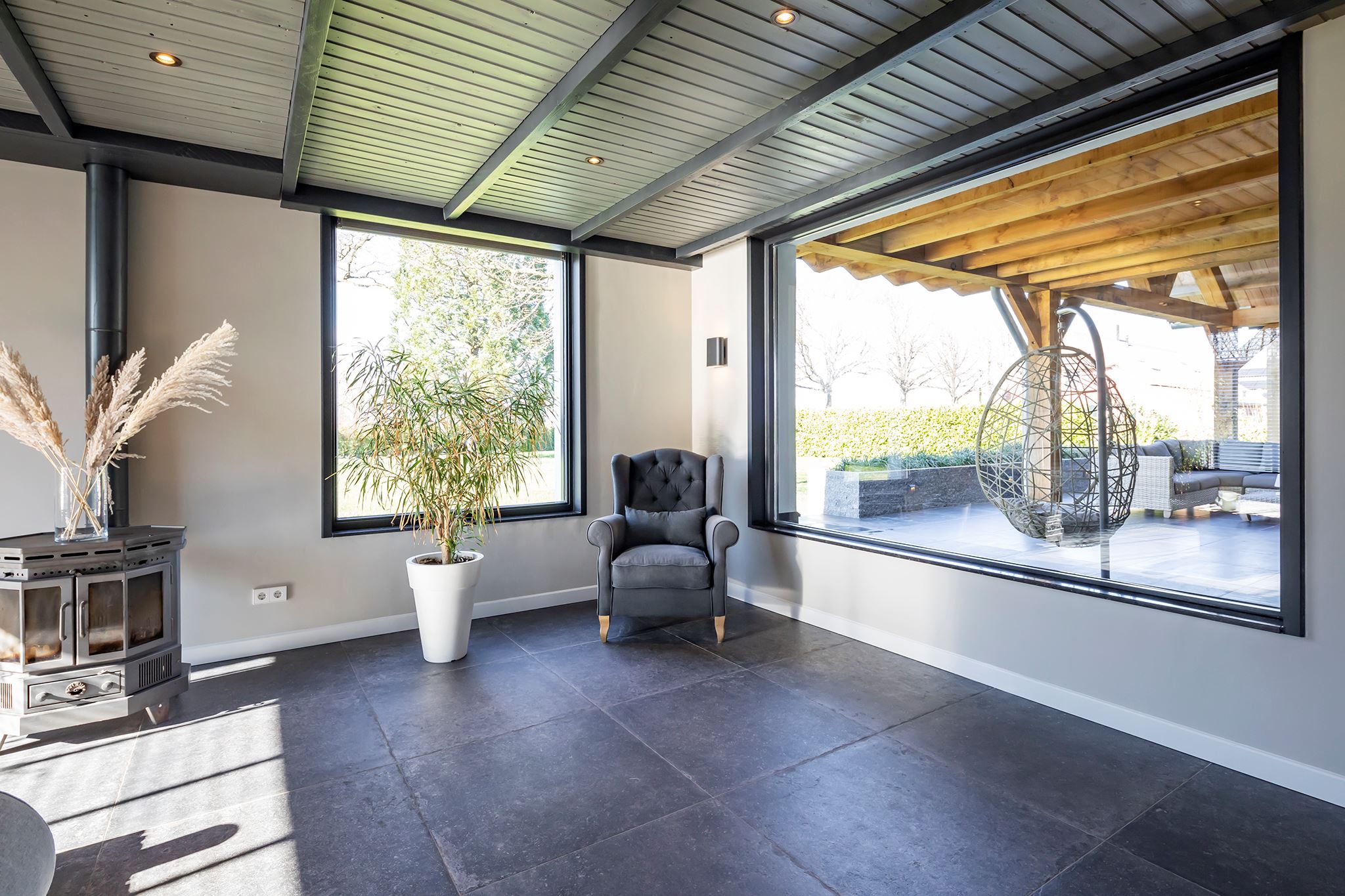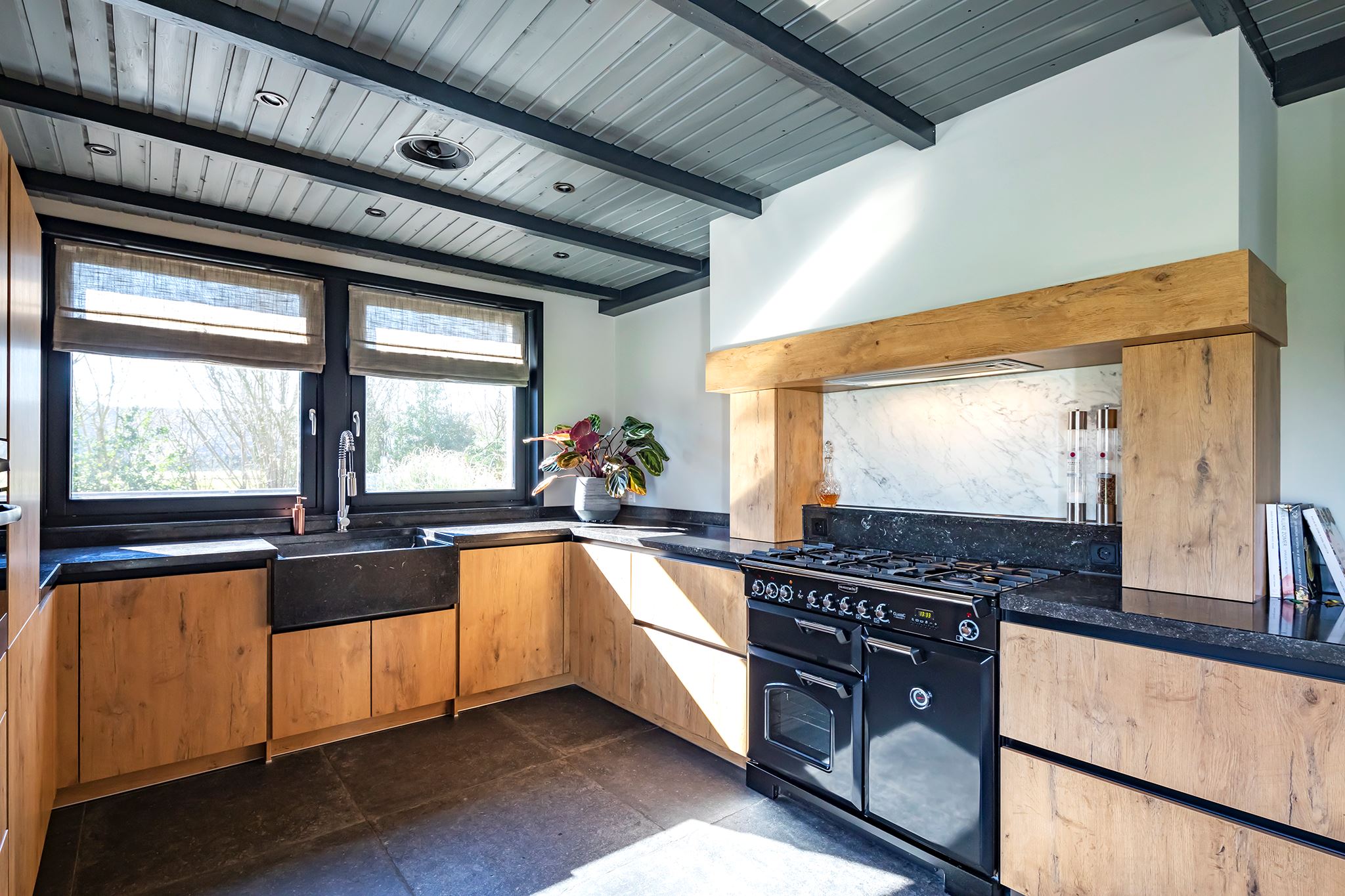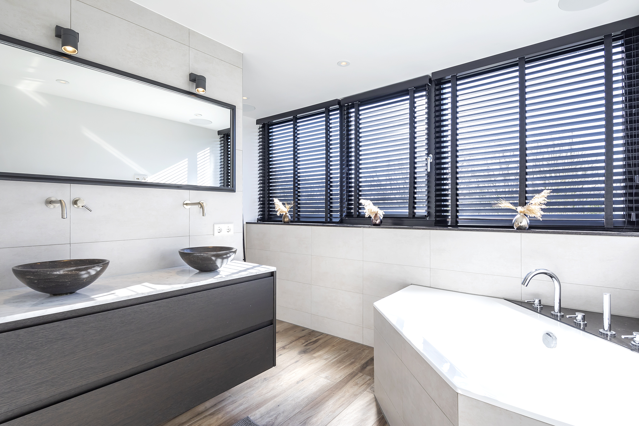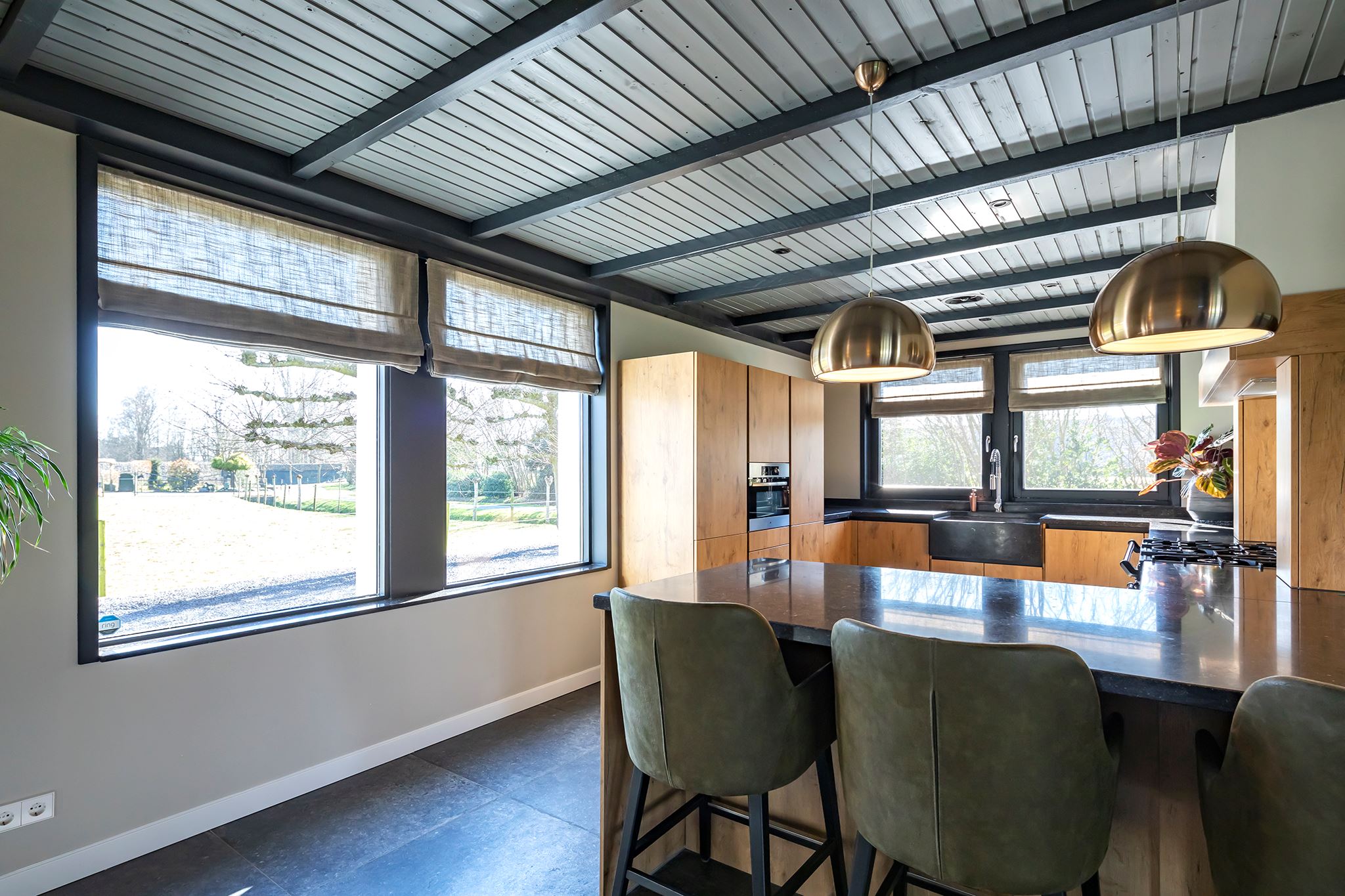 楼上分布三间卧室,主套房配有花园景观及步入式衣帽间,浴室设转角浴缸、步入式淋浴和天窗自然采光。隔热且供暖的地下室可作为家庭影院或办公空间灵活使用。实用细节包括28平方米储藏室、宽敞车棚、A级能效、23块太阳能板、光纤网络、HR++玻璃及全屋保温。地理位置兼备静谧与便捷,轻松畅达奥斯特韦克各项配套及Kampina自然保护区。