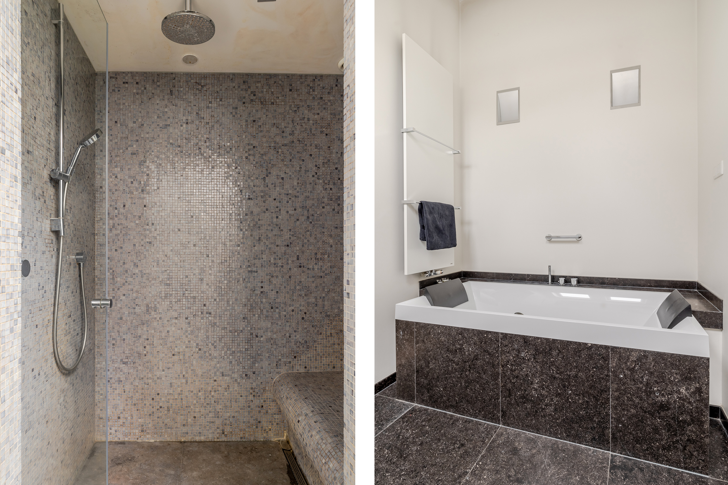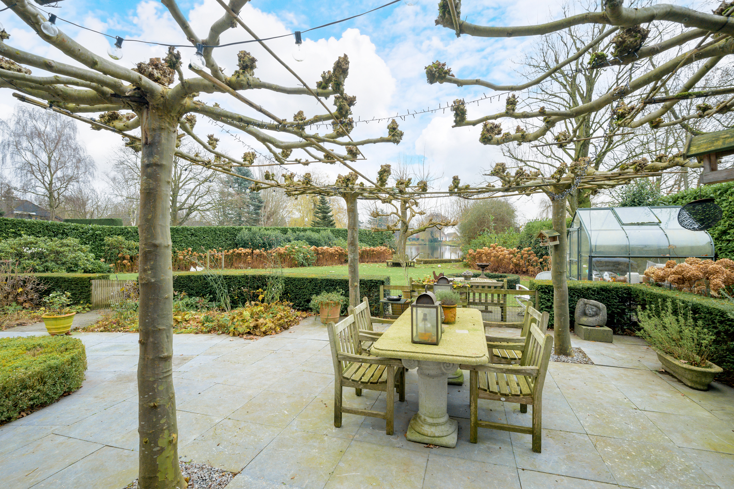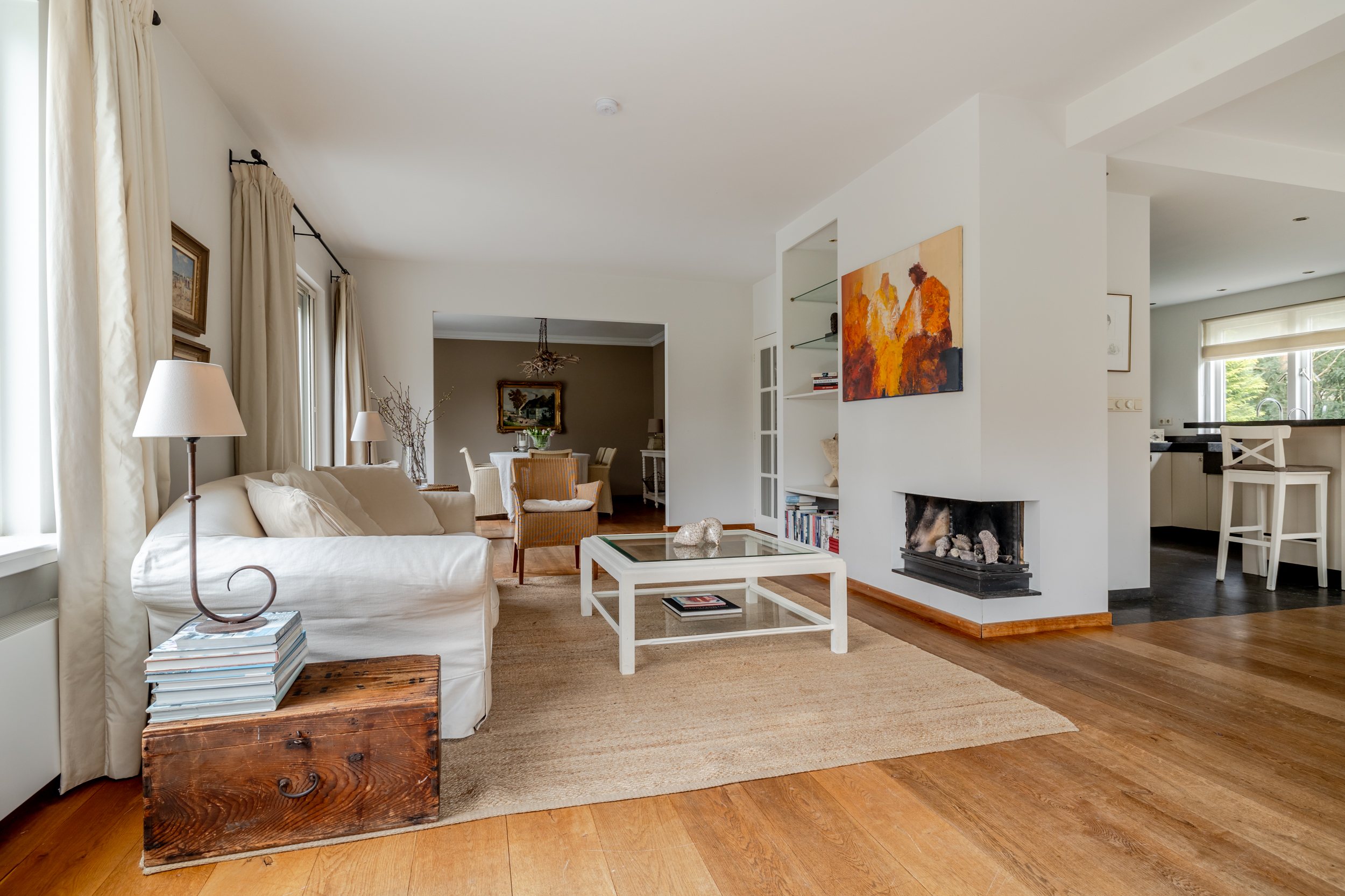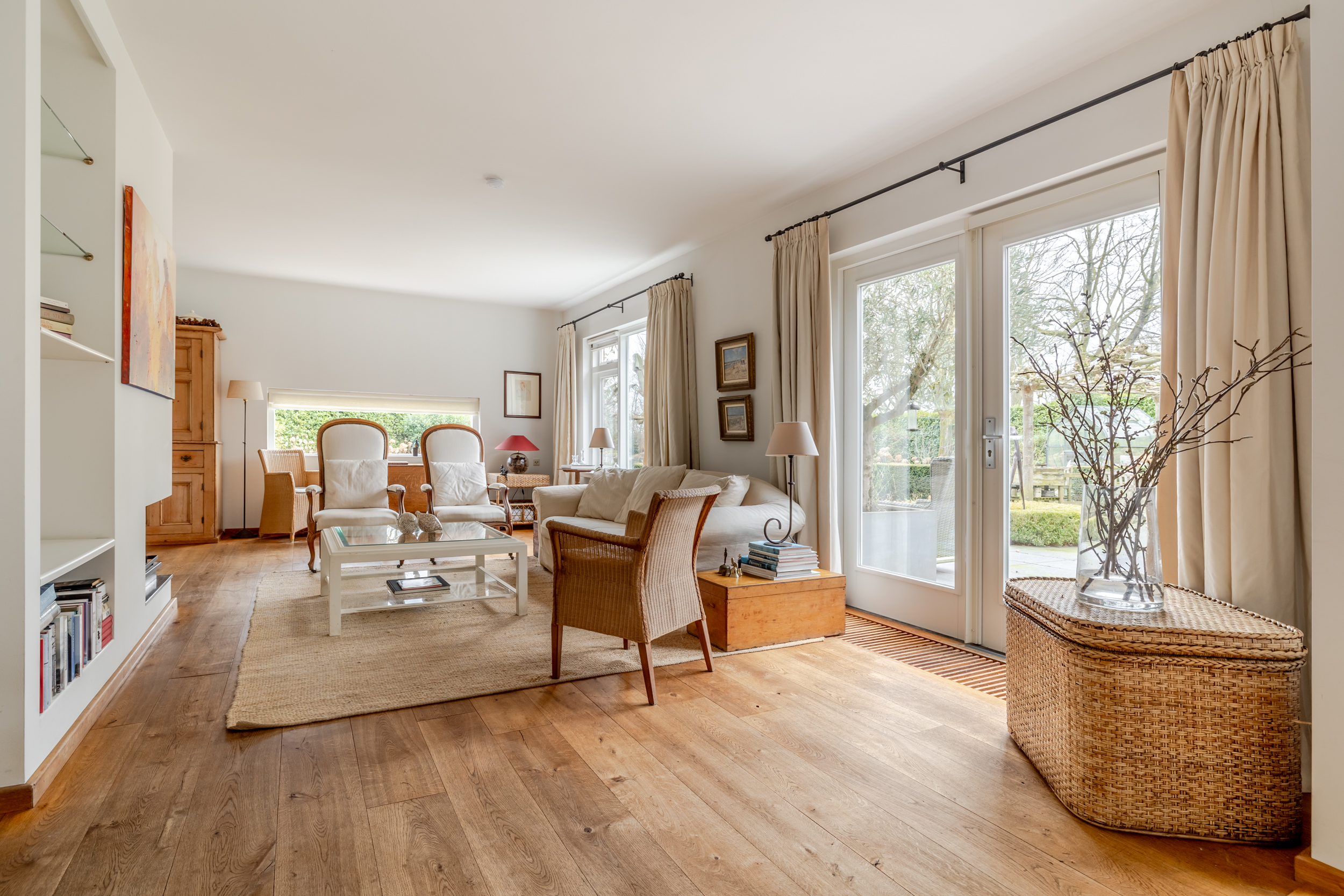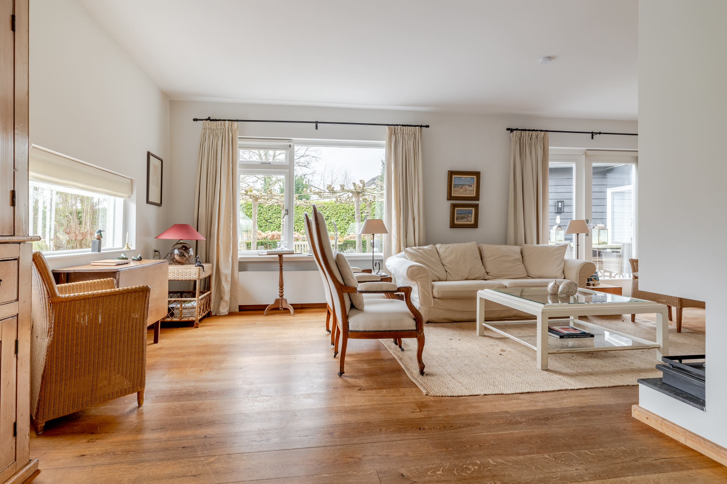 花园朝向的客厅是日常生活的核心,宽大的法式门和落地窗将自然光引入室内,庭院景观和水岸与起居空间无缝相连。约42 m²的宽阔办公室或工作室位于2008年扩建部分,配备定制储物柜,挑高5.4米的天花板和直通静谧花园露台的设计,带来极致的空间感。独立入口的这一侧翼同样适合用作办公、待客或护理用途。