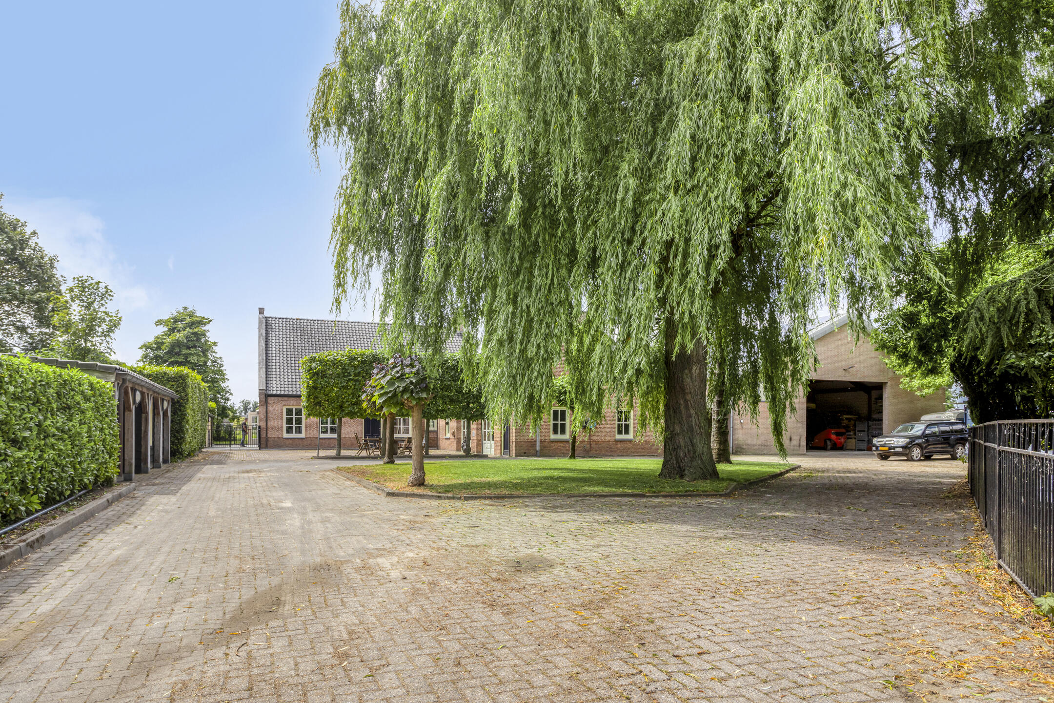 Aangelegde tuin rondom, terras bestraat met natuursteen, voorzien van een veranda tussen woning en loods, borders, gazon, vijverpartij, vrij uitzicht over de landerijen, vrij pad langs de woning t.b.v. achterom, lange oprijlaan overlopend in voorterrein als aangelegd met gebakken klinkers vv. straatkolken, deels betonklinkers en een groen plein, grotendeels omheind vv. elektrische poort met beeldcamera.