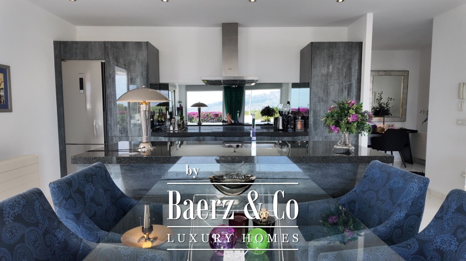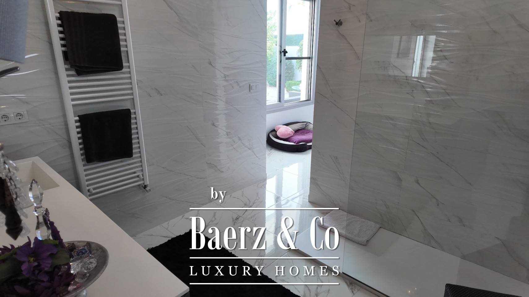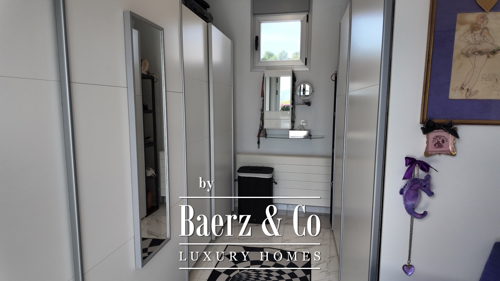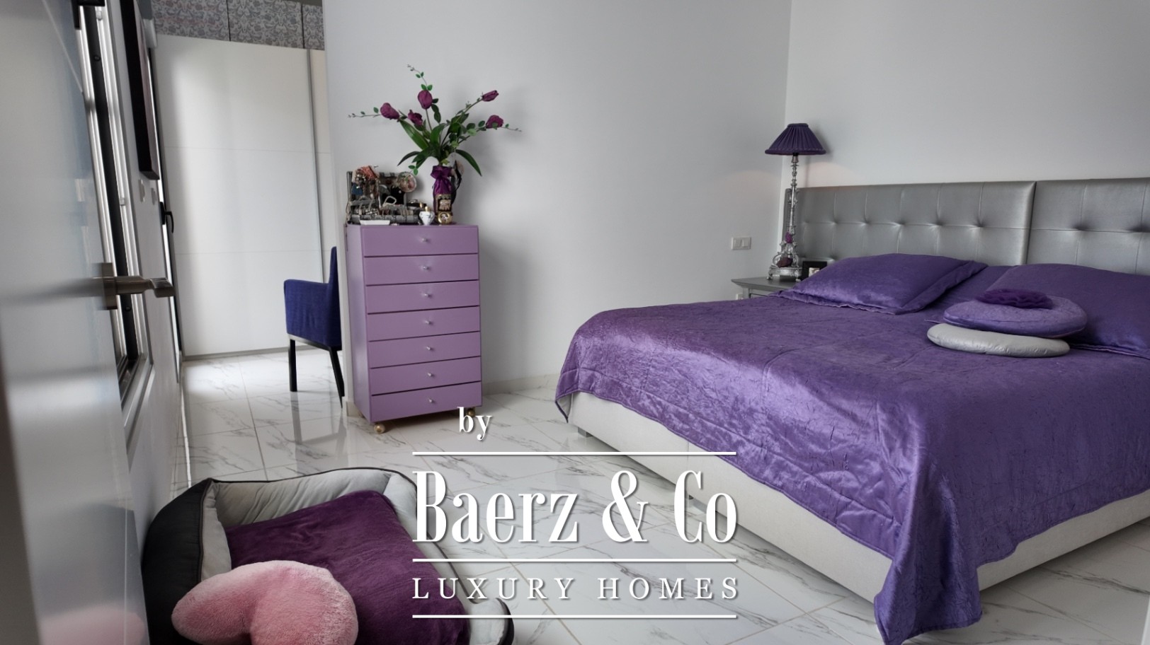 别墅以开放式客厅与餐区展现其设计理念,与配备中央岛台的精品厨房无缝衔接。两间卧室之中,主卧套间设有专属更衣间、独立浴室及私人露台出入口。大面积玻璃窗确保每个空间充盈自然光线,并与户外环境紧密相连。
