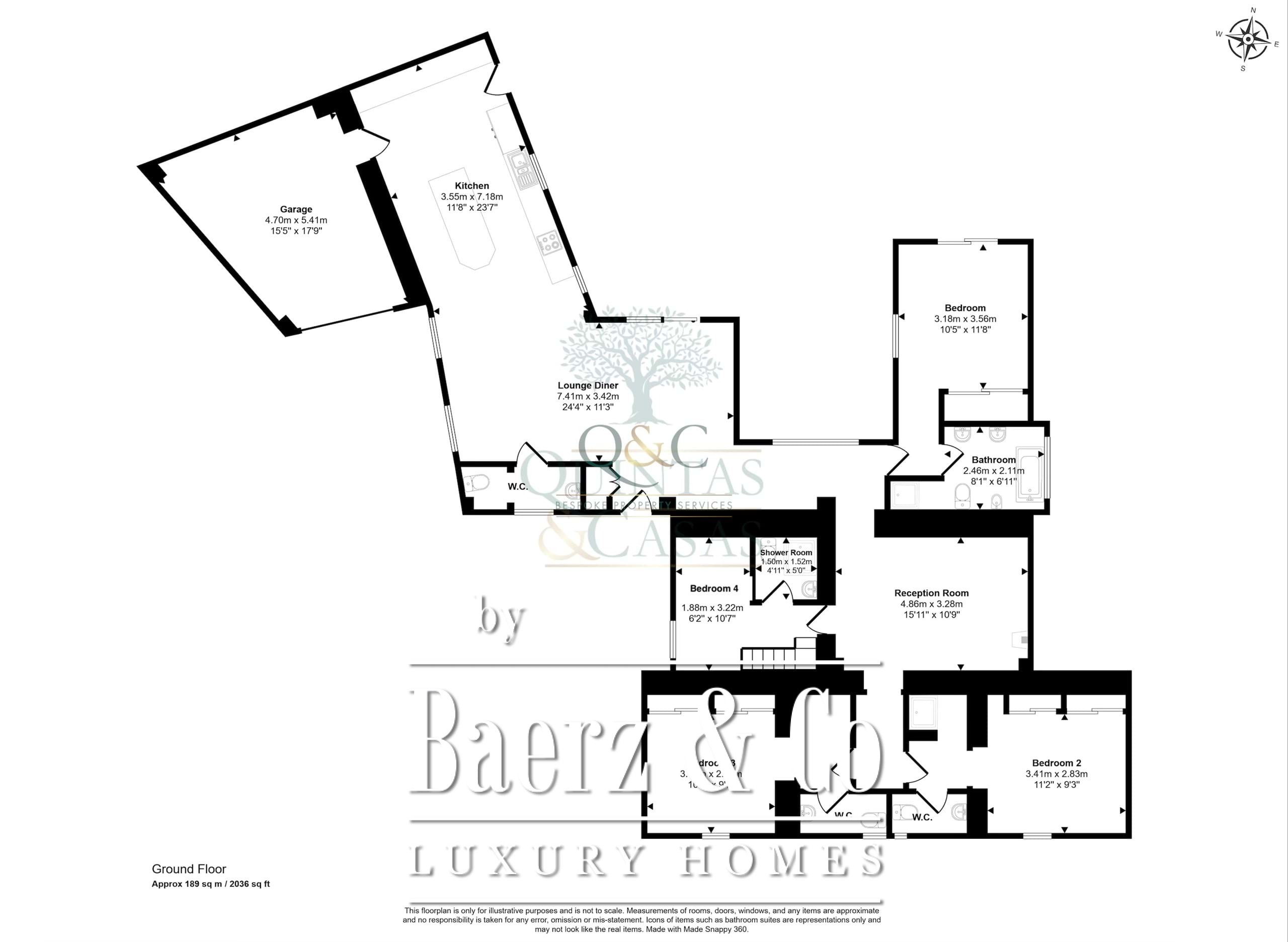 铺有石材的车道引入庄园,通向宽敞车库及实用杂物区,与住宅核心——配备齐全的厨房和餐区——直接相连。主接待厅引入自然采光与花园景观,无缝联通起居及娱乐空间。主卧套房拥两面花园景致,配有独立式浴缸及步入式淋浴,营造出私密静谧的居家庇护所。四间卧室均设有套内卫浴,其中一间配有夹层,可作为理想的工作或休憩空间,并延伸至遮蔽屋顶露台。