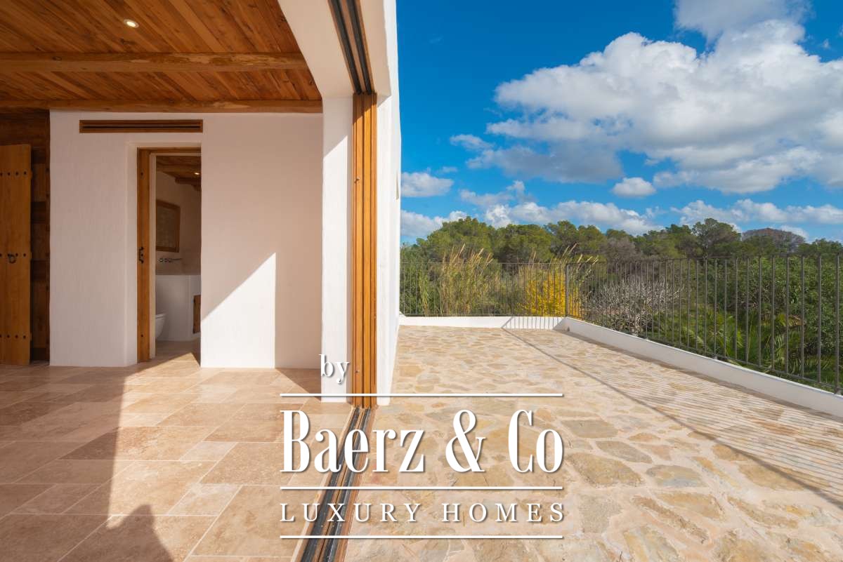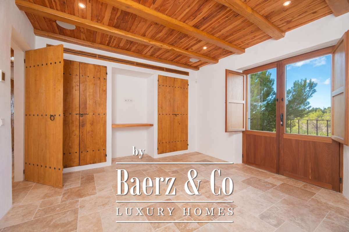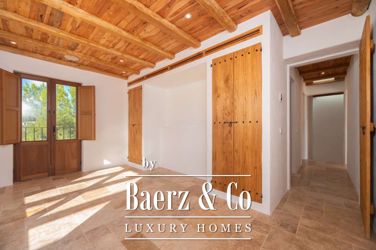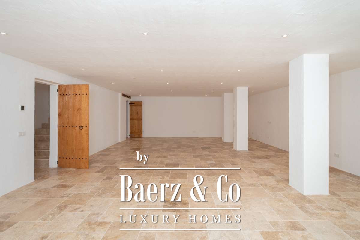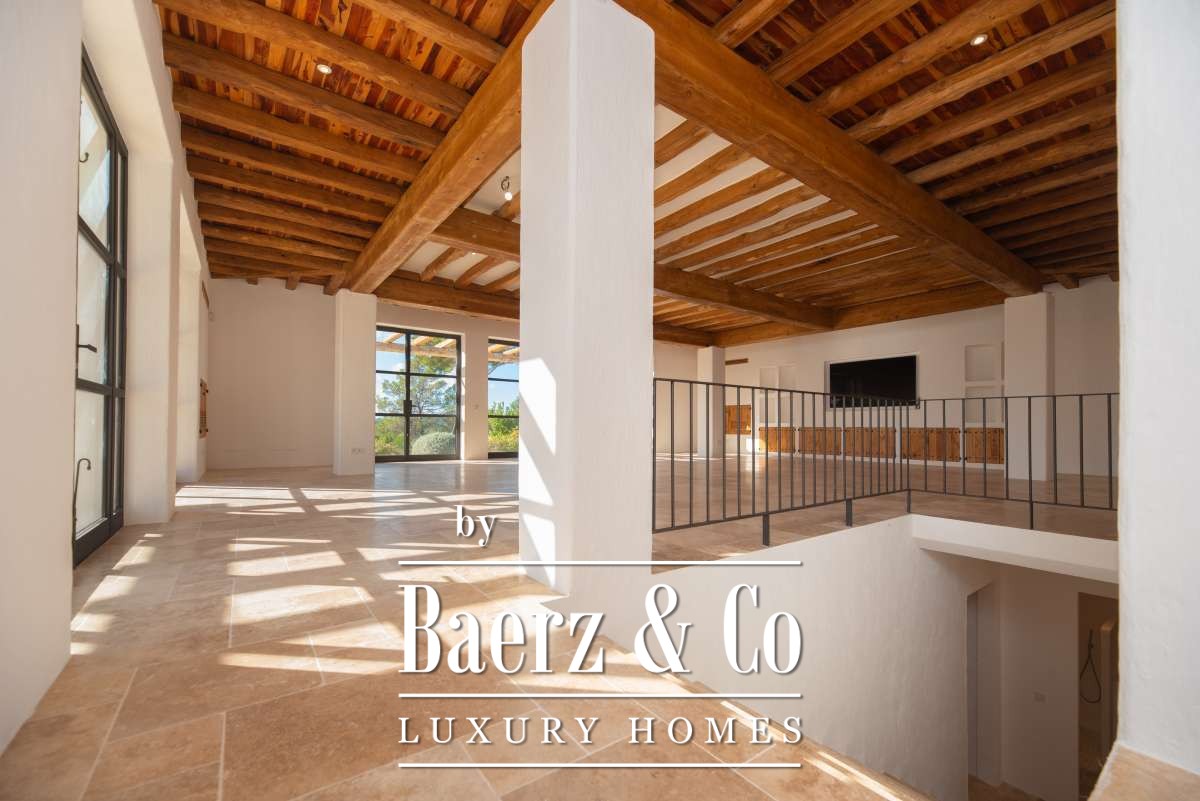庄园近期全面翻新,历史韵味与现代精致优雅无缝融合。620 平方米的起居空间极致考究,处处彰显永恒的高贵气质——从裸露的石墙到和谐柔和的色调,无不展现细腻品味。各功能区开放通透,自然光与户外景致穿透每一个角落;厨房与起居室巧妙连贯,既适合亲密聚会,也为静谧思索营造空间。六间卧室与五间浴室极具格调,为居者带来舒适体验,主套房可俯瞰全景,更能夜观灯火辉映的 Dalt Vila 天际线。