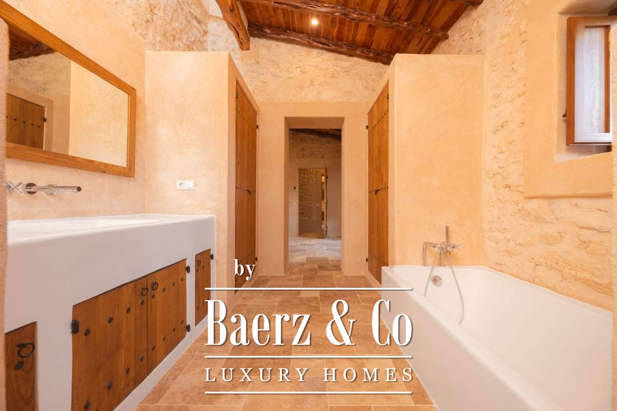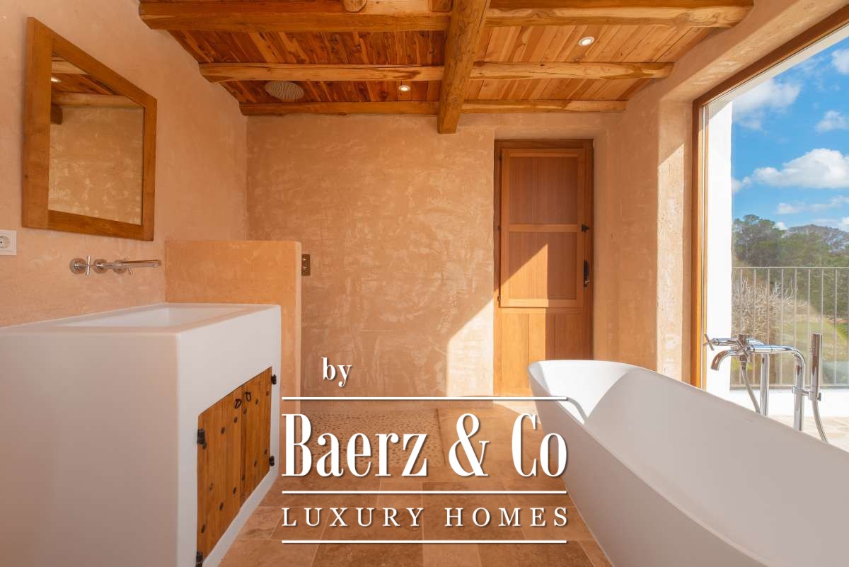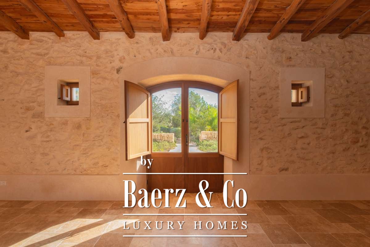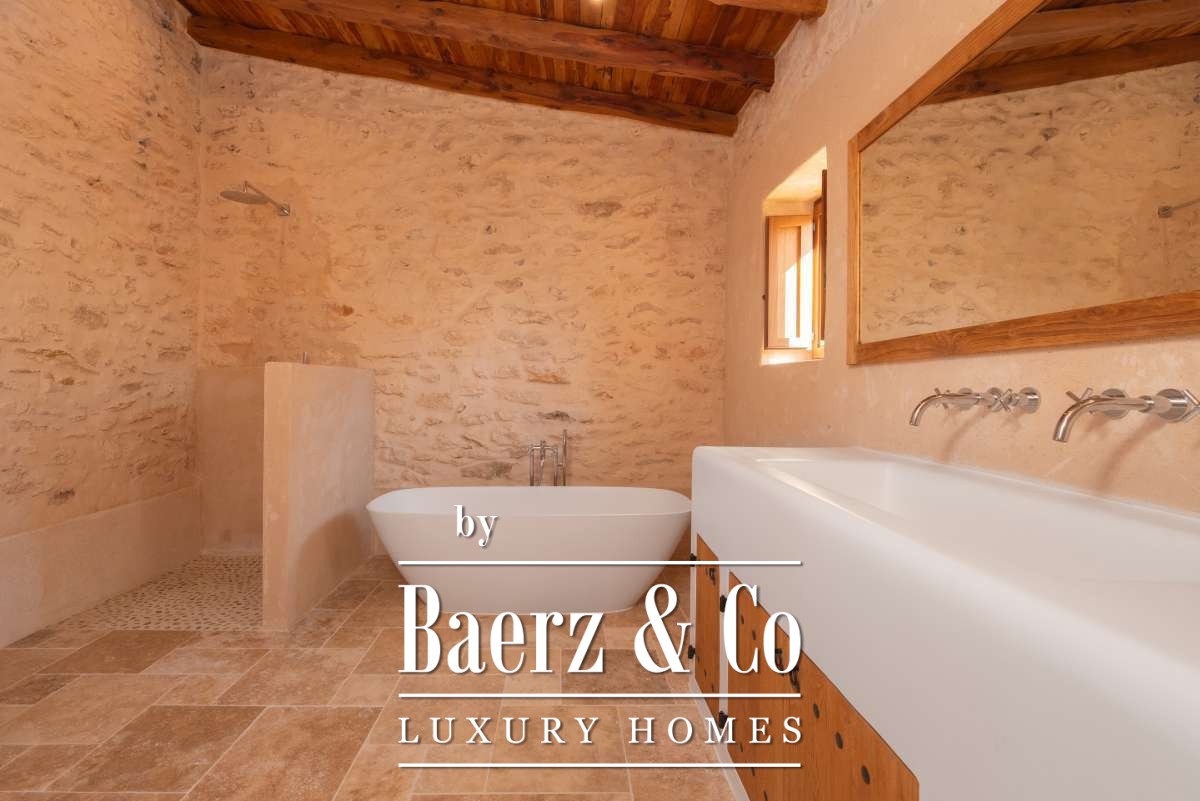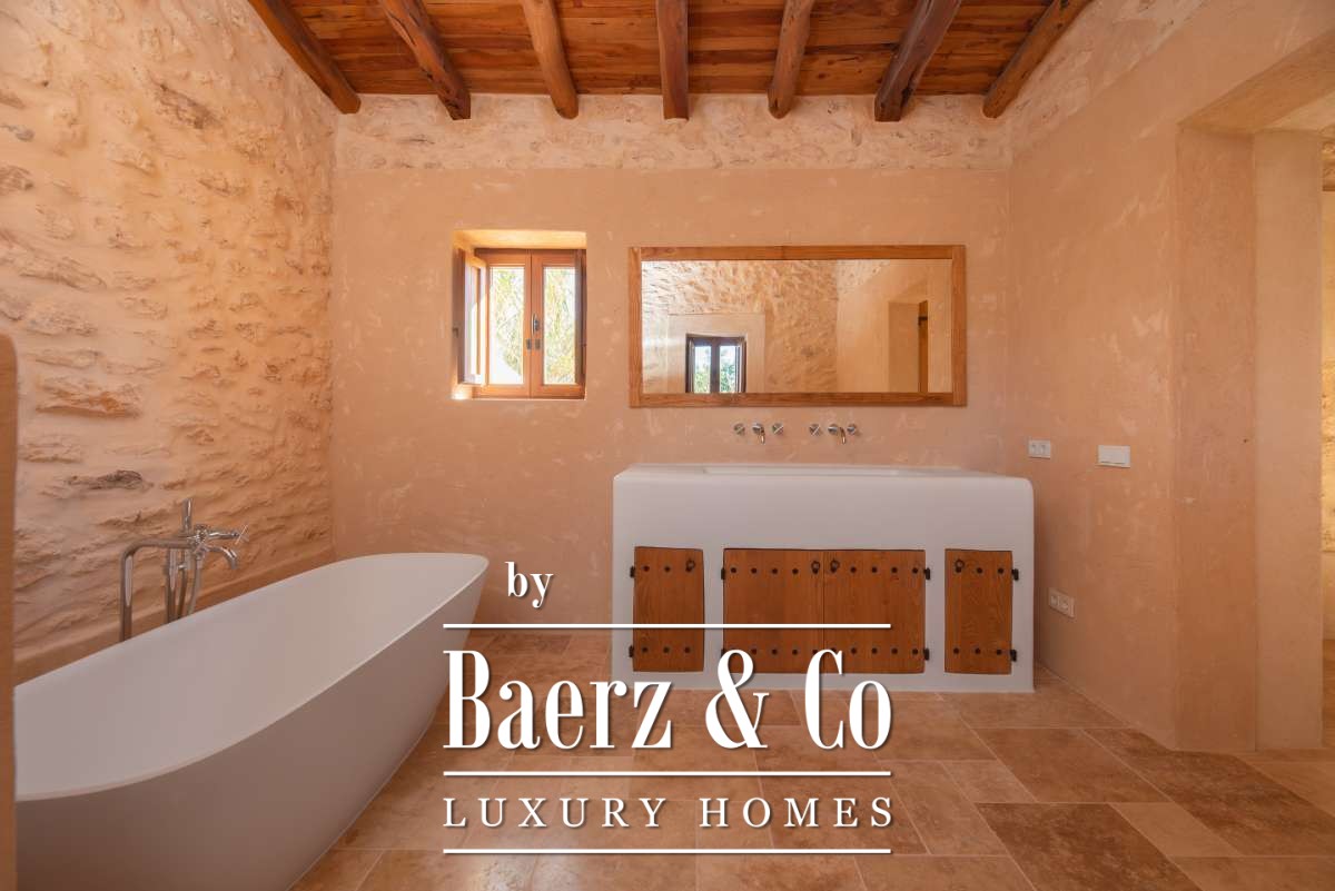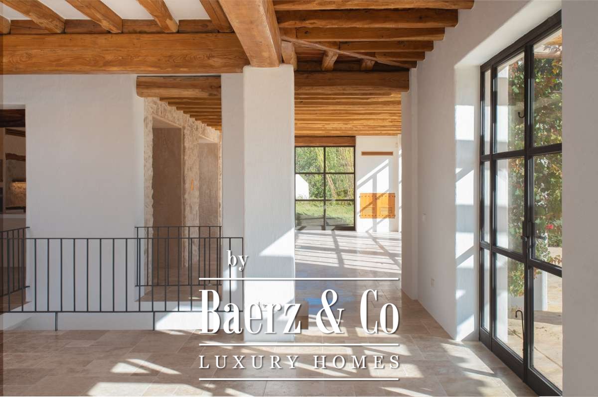 庄园近期全面翻新,历史韵味与现代精致优雅无缝融合。620 平方米的起居空间极致考究,处处彰显永恒的高贵气质——从裸露的石墙到和谐柔和的色调,无不展现细腻品味。各功能区开放通透,自然光与户外景致穿透每一个角落;厨房与起居室巧妙连贯,既适合亲密聚会,也为静谧思索营造空间。六间卧室与五间浴室极具格调,为居者带来舒适体验,主套房可俯瞰全景,更能夜观灯火辉映的 Dalt Vila 天际线。
