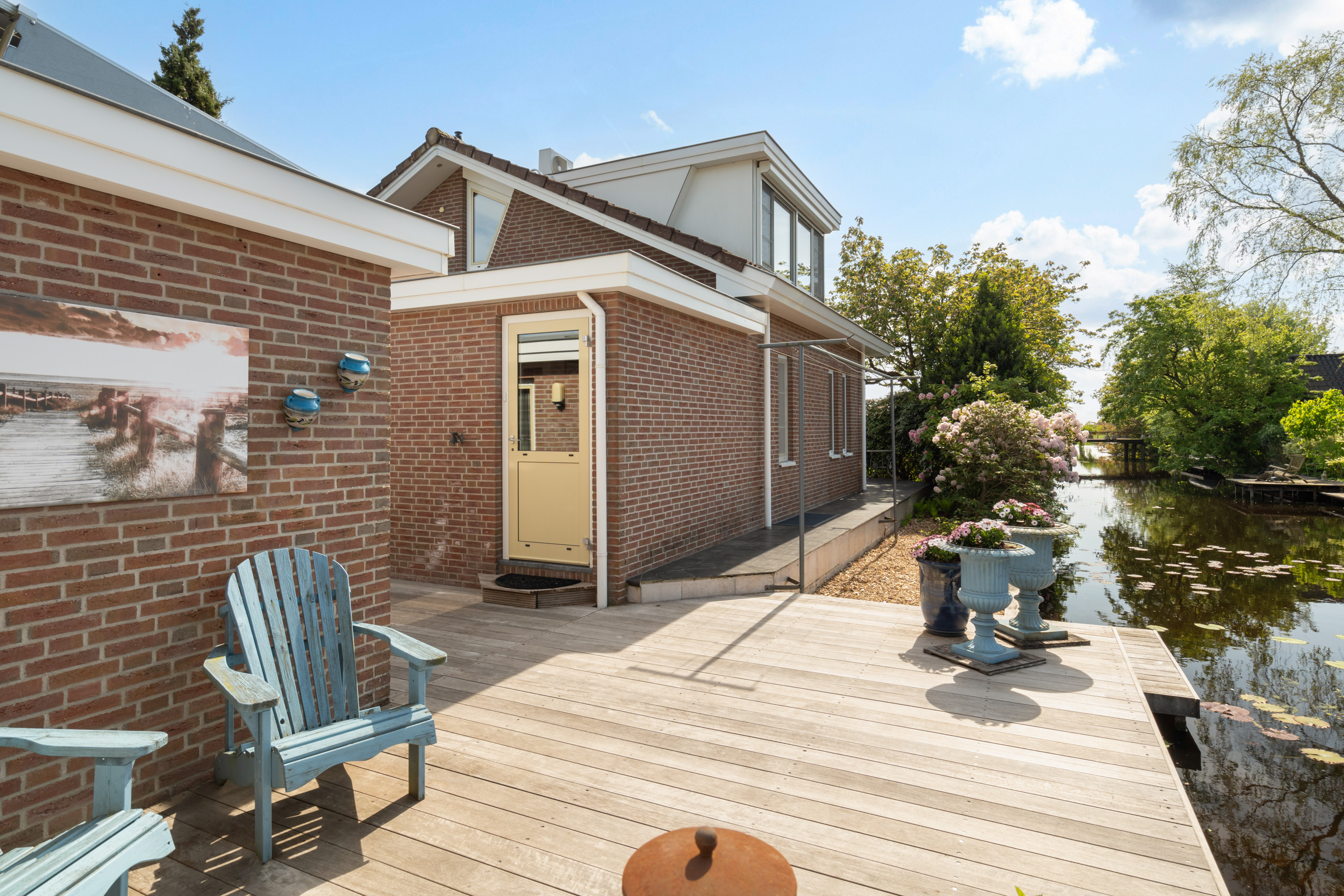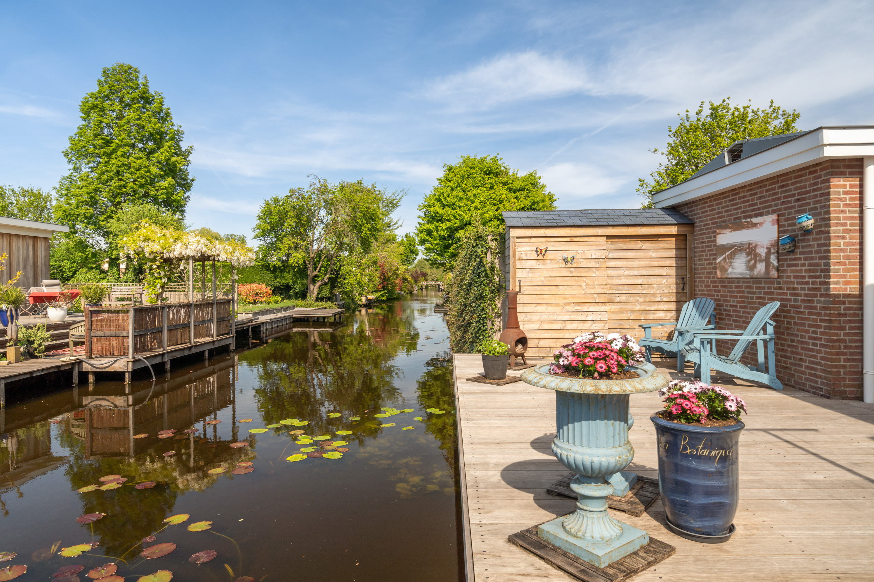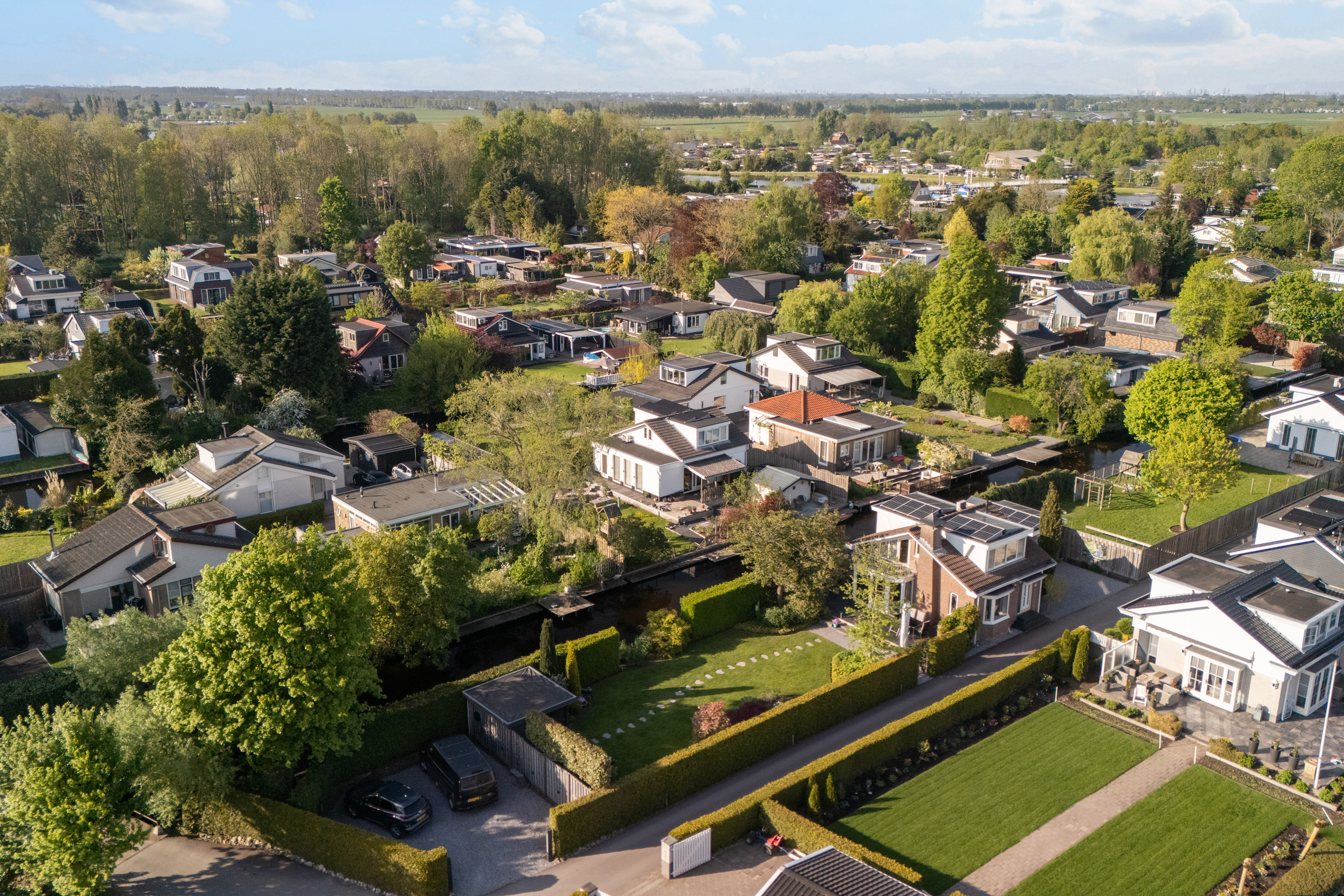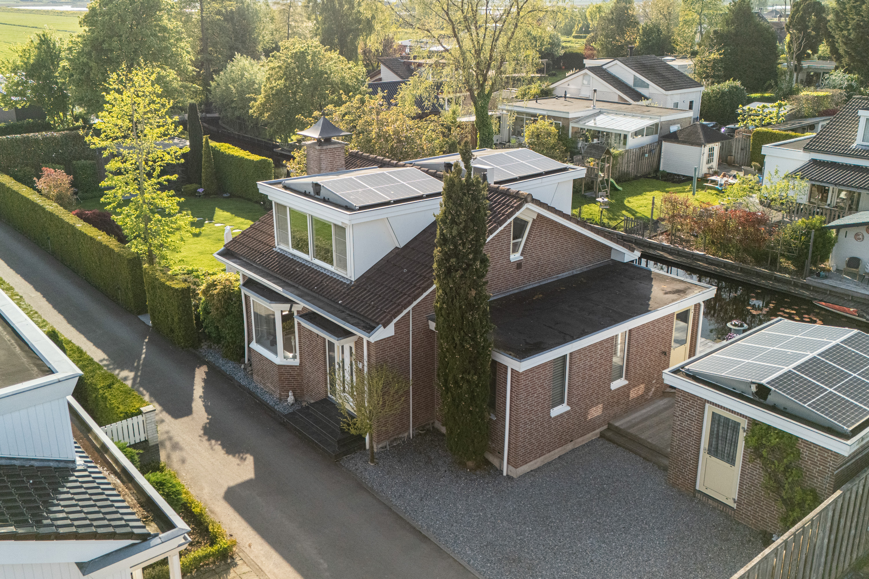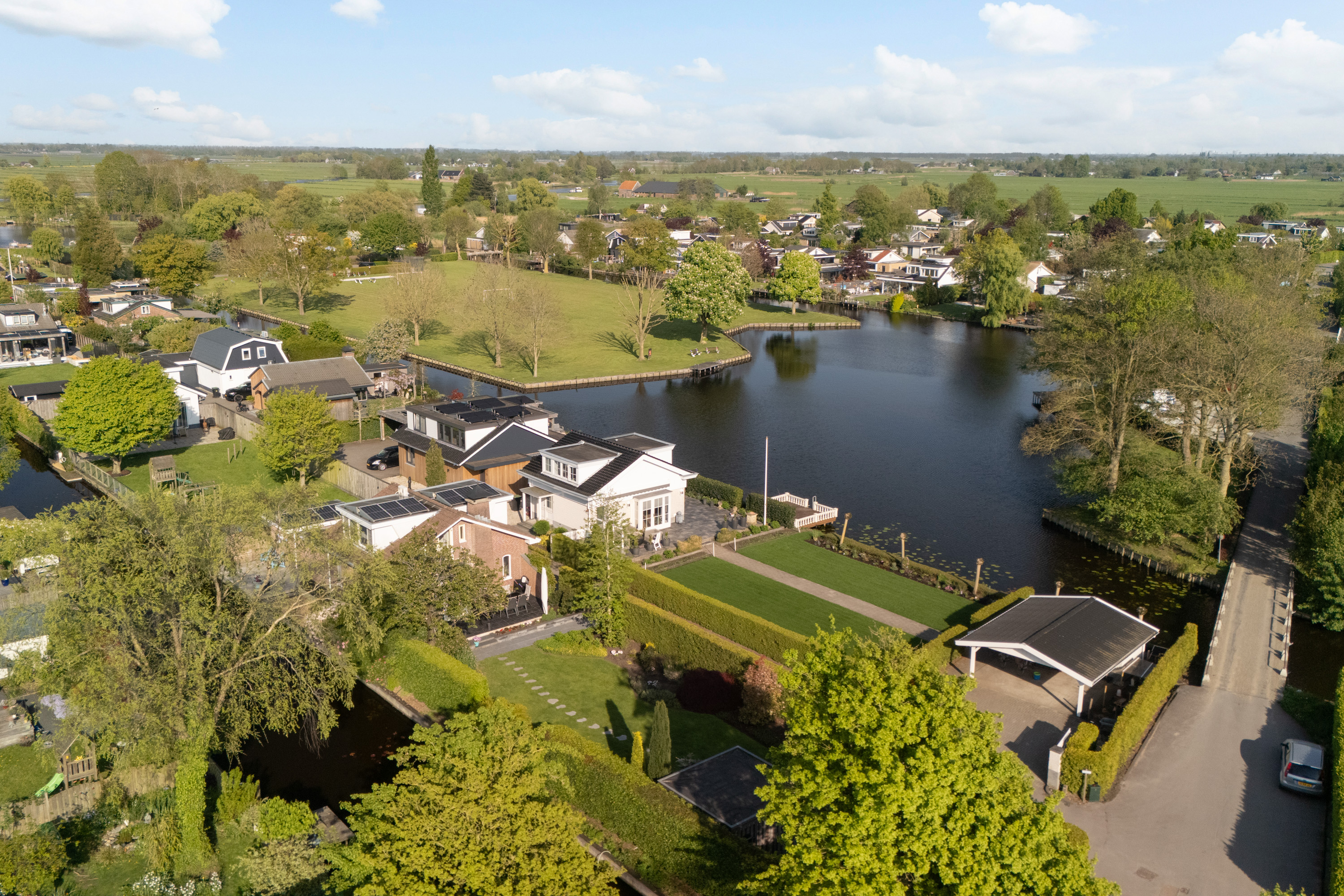 这栋位于Zevenhoven的独立住宅于Kromme Mijdrecht河畔,呈现罕见的私密性、自然归属感与现代高效性之间的极致平衡。167平方米的精心布局室内空间,设有三间卧室和一间浴室,配套1,006平方米的景观园地,水景、光影与精湛工艺共同勾勒出日常节奏。主入口置身于修剪有序的前花园,步入其间的明亮门厅,细腻用材与巧妙细节营造出静谧持久的居住氛围。灵活的双向入户设计提供私密性,非常适合在家办公与家庭生活的无缝切换,或从容迎接贵宾。起居室通透大窗、壁炉与可推拉的落地门使室内外融汇,开阔通达花园。现代开放式厨房配备Siemens厨电及Quooker热水龙头,邻接的大飘窗营造出临河用餐区。后部的家庭工作室享有充足自然光,适合专注办公或创意灵感激发。装修完善的地下室设有休息区、卧室及功能区,拓展了接待与生活空间。楼上两间主卧拥有广阔景致与舒适体验,其中一间直通独立阳台并配备空调。浴室处处体现用心设计,自然采光充沛,设施齐全。室外花园于2017年重新规划,设有加高硬木露台、焕新河岸和码头,让滨水生活轻松惬意——一处别出心裁的奢华别墅目前在Zevenhoven发售。带顶阳台全年舒适无忧,呼应宅邸对悠闲与全天候享受的承诺。私家安防停车位配备摄像头监控和电动汽车充电桩,出行无忧。全保温工作室储物间满足多元实用需求,同时以A级能效与20块太阳能板(年产约7000千瓦时)展现可持续理念。地暖、三重通风与升级的基础设施让住宅未来十足无忧。房产坐拥Groene Hart宁静美景,兼具宁谧与便捷,紧邻城镇配套设施,是持久河畔生活的理想邀请。