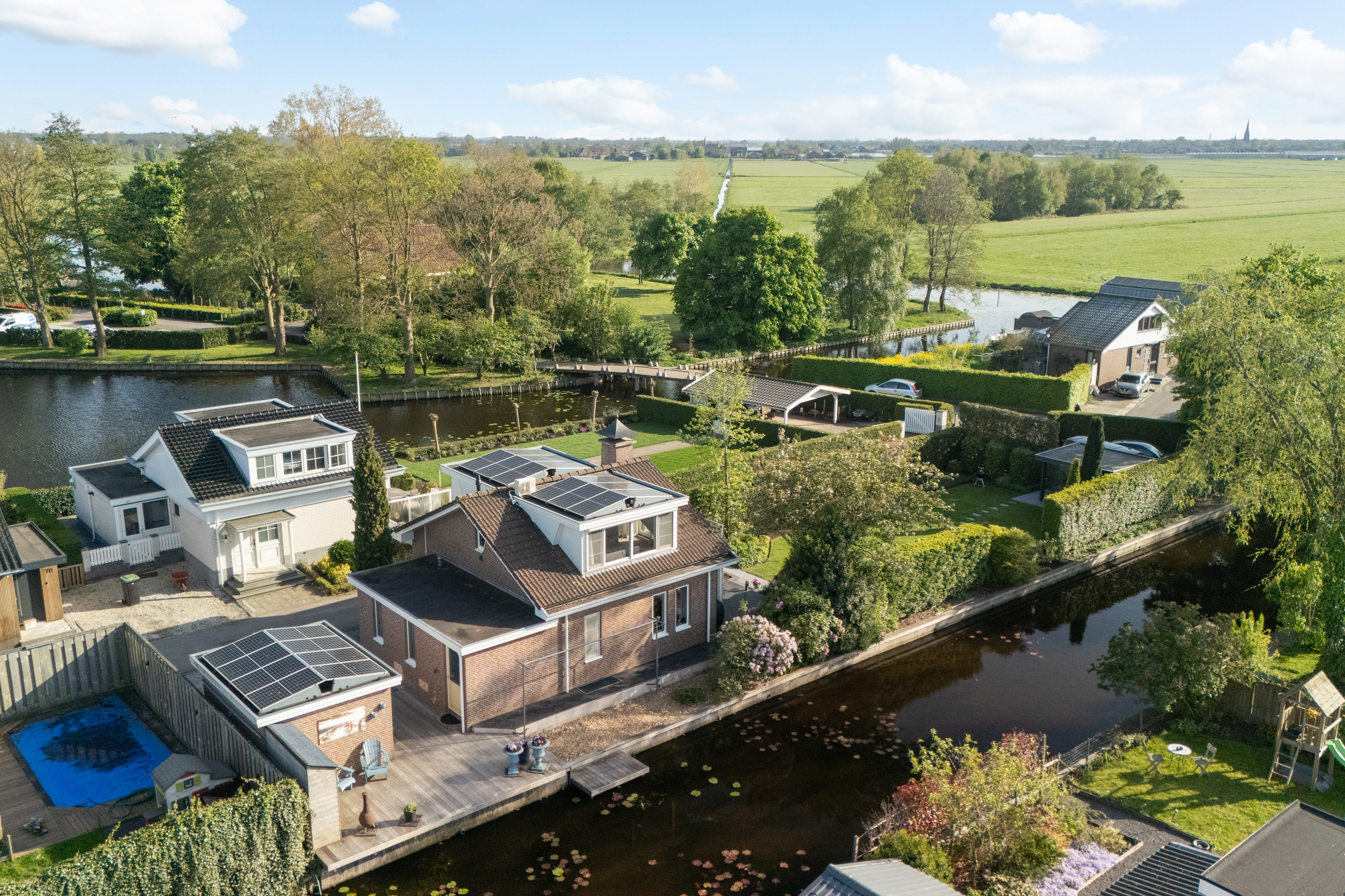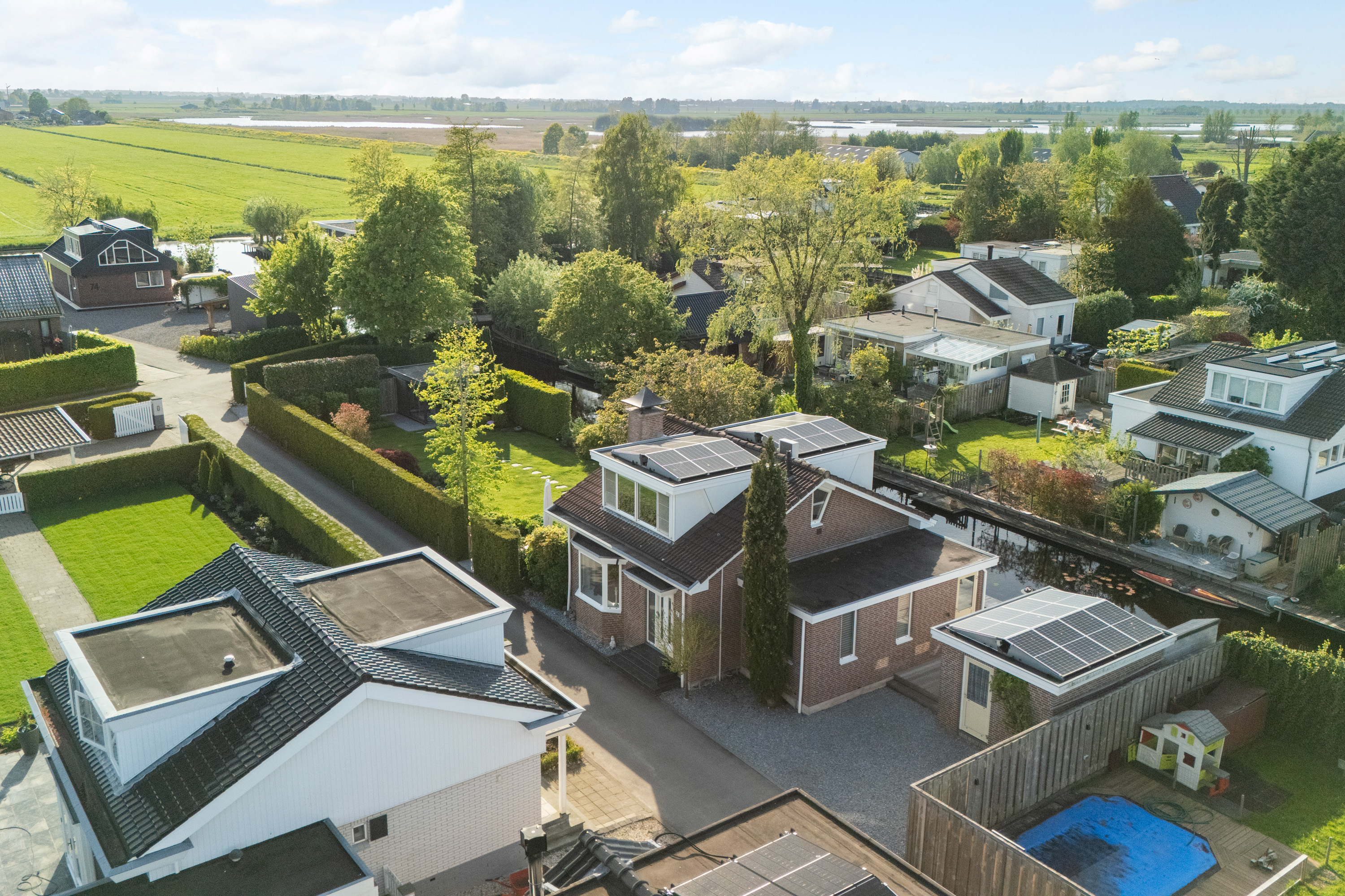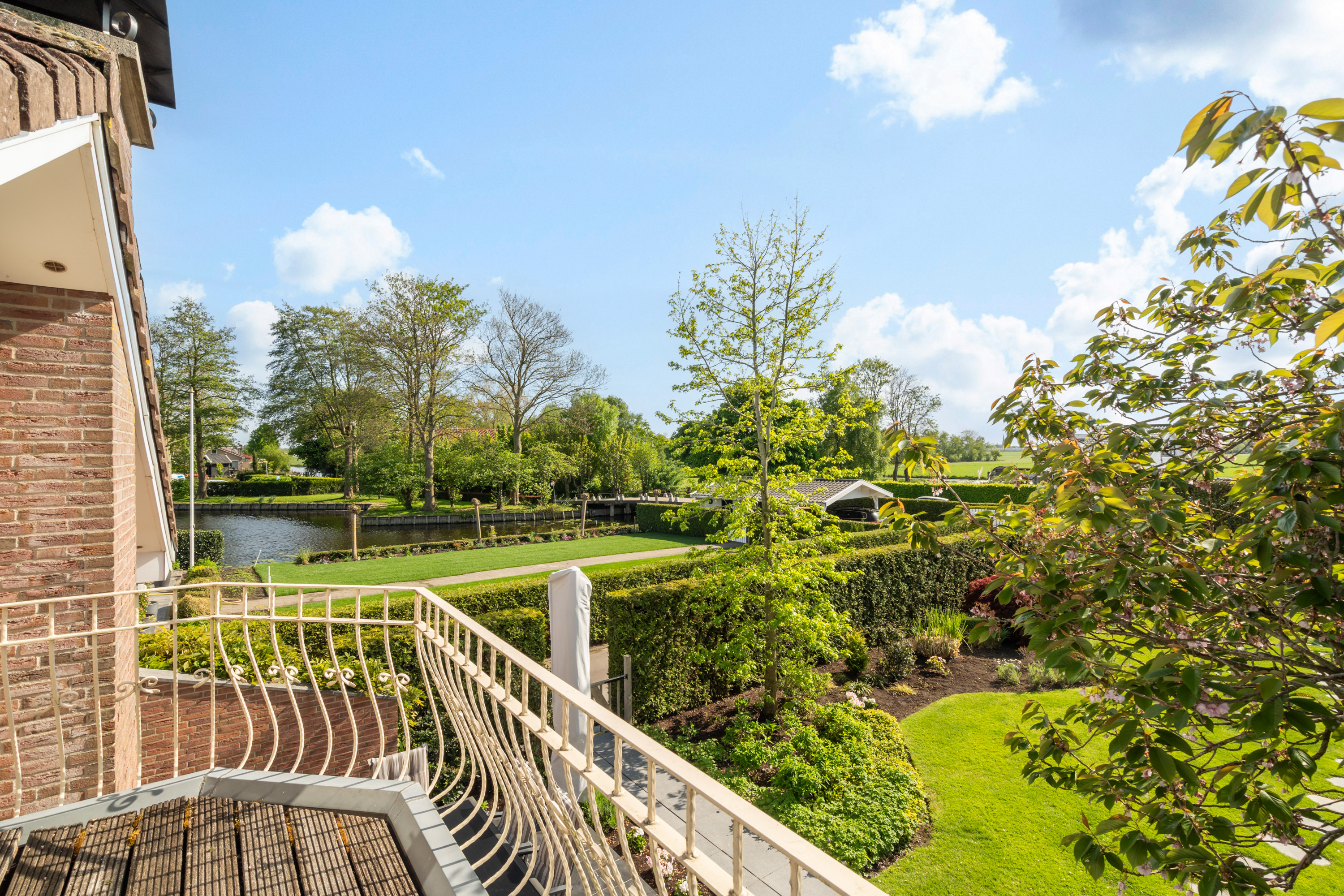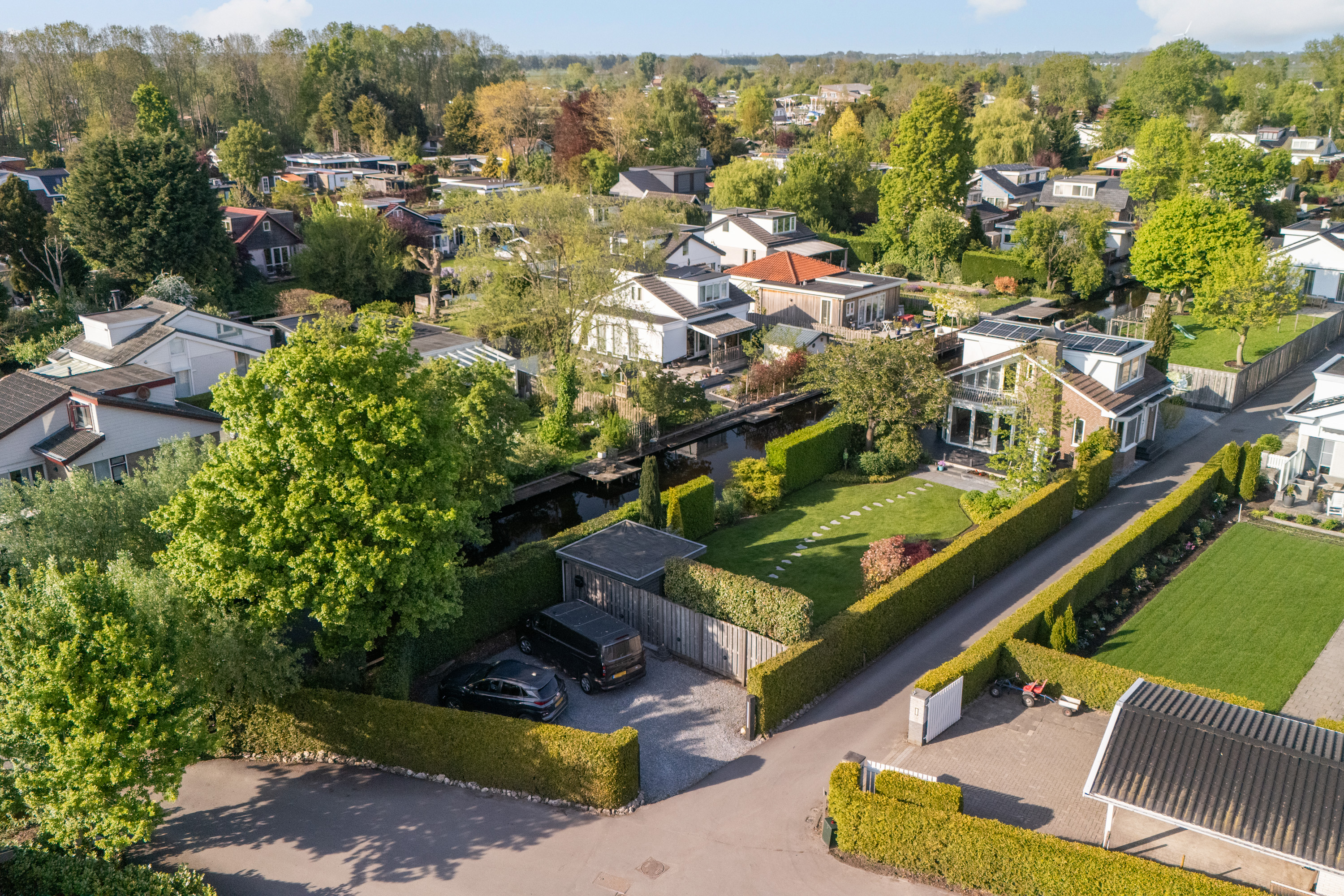这栋位于Zevenhoven的独立住宅于Kromme Mijdrecht河畔,呈现罕见的私密性、自然归属感与现代高效性之间的极致平衡。167平方米的精心布局室内空间,设有三间卧室和一间浴室,配套1,006平方米的景观园地,水景、光影与精湛工艺共同勾勒出日常节奏。主入口置身于修剪有序的前花园,步入其间的明亮门厅,细腻用材与巧妙细节营造出静谧持久的居住氛围。灵活的双向入户设计提供私密性,非常适合在家办公与家庭生活的无缝切换,或从容迎接贵宾。起居室通透大窗、壁炉与可推拉的落地门使室内外融汇,开阔通达花园。现代开放式厨房配备Siemens厨电及Quooker热水龙头,邻接的大飘窗营造出临河用餐区。后部的家庭工作室享有充足自然光,适合专注办公或创意灵感激发。装修完善的地下室设有休息区、卧室及功能区,拓展了接待与生活空间。楼上两间主卧拥有广阔景致与舒适体验,其中一间直通独立阳台并配备空调。浴室处处体现用心设计,自然采光充沛,设施齐全。室外花园于2017年重新规划,设有加高硬木露台、焕新河岸和码头,让滨水生活轻松惬意——一处别出心裁的奢华别墅目前在Zevenhoven发售。带顶阳台全年舒适无忧,呼应宅邸对悠闲与全天候享受的承诺。私家安防停车位配备摄像头监控和电动汽车充电桩,出行无忧。全保温工作室储物间满足多元实用需求,同时以A级能效与20块太阳能板(年产约7000千瓦时)展现可持续理念。地暖、三重通风与升级的基础设施让住宅未来十足无忧。房产坐拥Groene Hart宁静美景,兼具宁谧与便捷,紧邻城镇配套设施,是持久河畔生活的理想邀请。