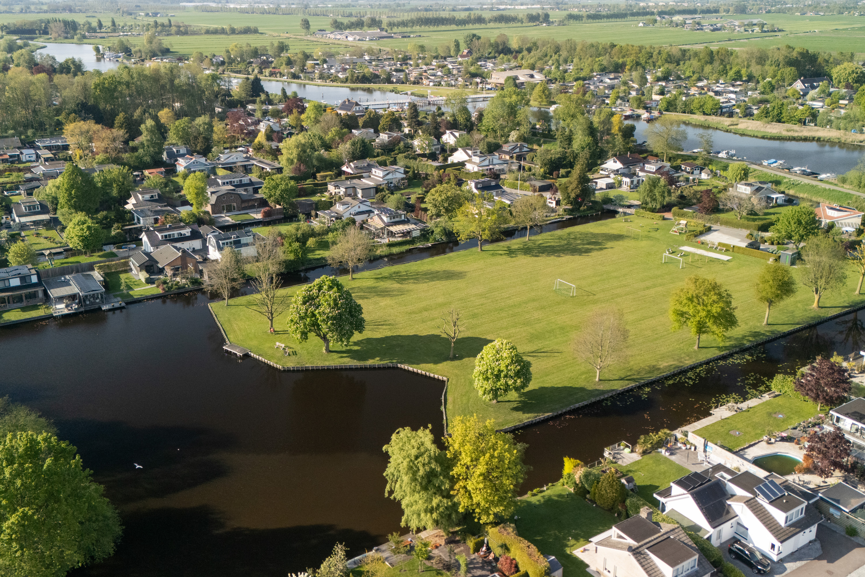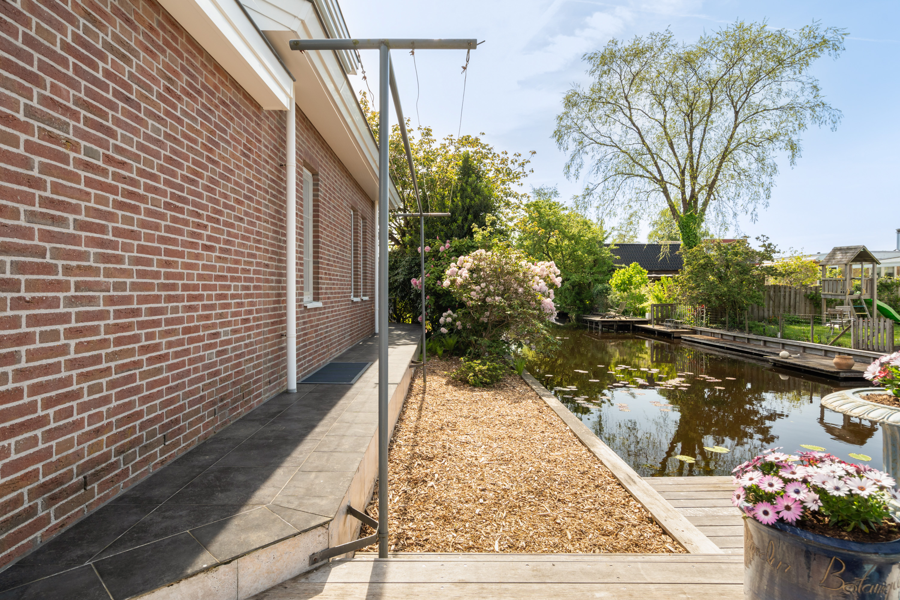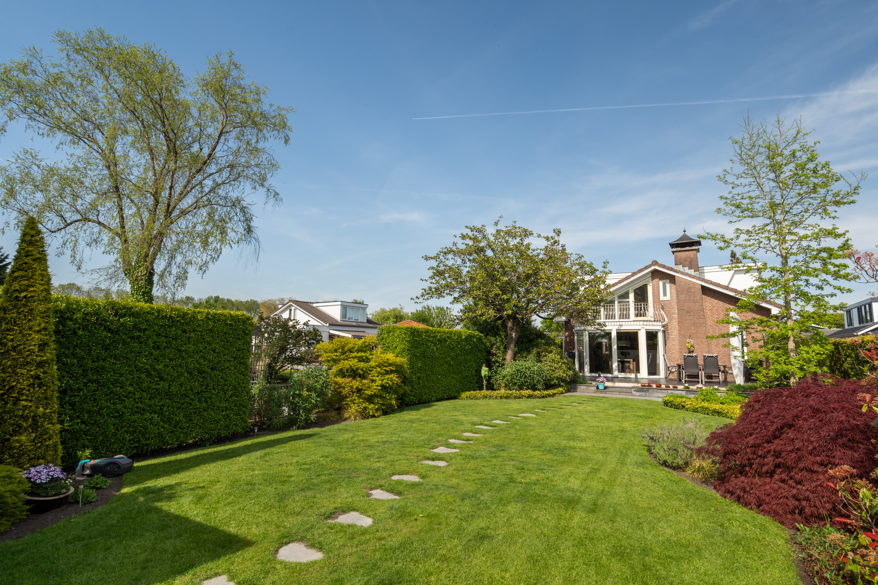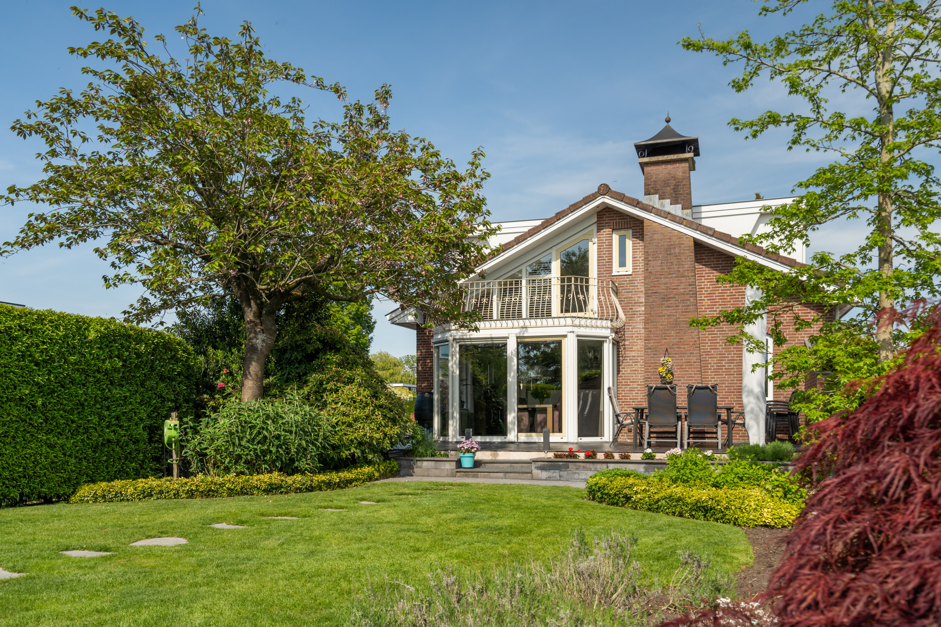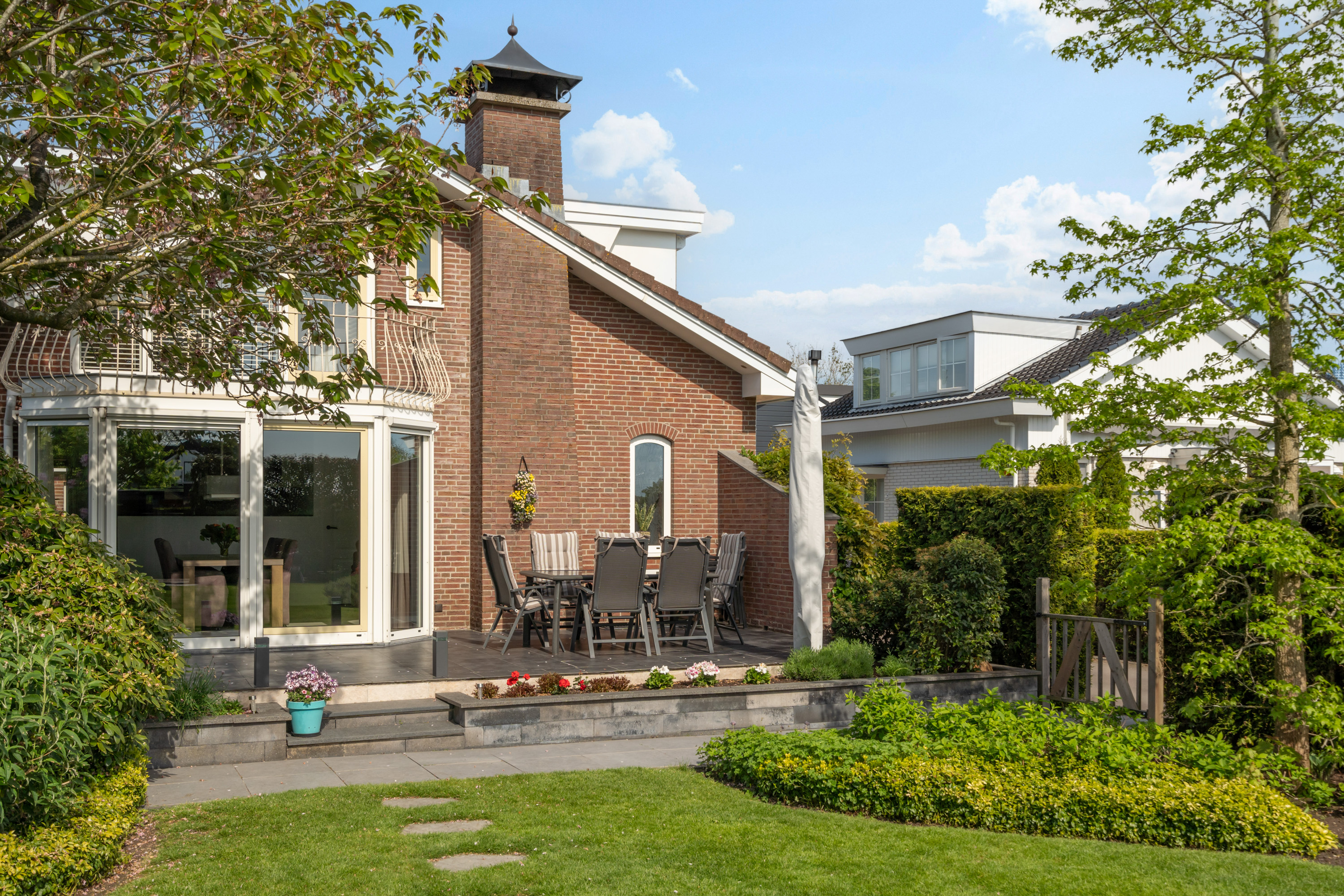 这栋位于Zevenhoven的独立住宅于Kromme Mijdrecht河畔,呈现罕见的私密性、自然归属感与现代高效性之间的极致平衡。167平方米的精心布局室内空间,设有三间卧室和一间浴室,配套1,006平方米的景观园地,水景、光影与精湛工艺共同勾勒出日常节奏。主入口置身于修剪有序的前花园,步入其间的明亮门厅,细腻用材与巧妙细节营造出静谧持久的居住氛围。灵活的双向入户设计提供私密性,非常适合在家办公与家庭生活的无缝切换,或从容迎接贵宾。起居室通透大窗、壁炉与可推拉的落地门使室内外融汇,开阔通达花园。现代开放式厨房配备Siemens厨电及Quooker热水龙头,邻接的大飘窗营造出临河用餐区。后部的家庭工作室享有充足自然光,适合专注办公或创意灵感激发。装修完善的地下室设有休息区、卧室及功能区,拓展了接待与生活空间。楼上两间主卧拥有广阔景致与舒适体验,其中一间直通独立阳台并配备空调。浴室处处体现用心设计,自然采光充沛,设施齐全。室外花园于2017年重新规划,设有加高硬木露台、焕新河岸和码头,让滨水生活轻松惬意——一处别出心裁的奢华别墅目前在Zevenhoven发售。带顶阳台全年舒适无忧,呼应宅邸对悠闲与全天候享受的承诺。私家安防停车位配备摄像头监控和电动汽车充电桩,出行无忧。全保温工作室储物间满足多元实用需求,同时以A级能效与20块太阳能板(年产约7000千瓦时)展现可持续理念。地暖、三重通风与升级的基础设施让住宅未来十足无忧。房产坐拥Groene Hart宁静美景,兼具宁谧与便捷,紧邻城镇配套设施,是持久河畔生活的理想邀请。