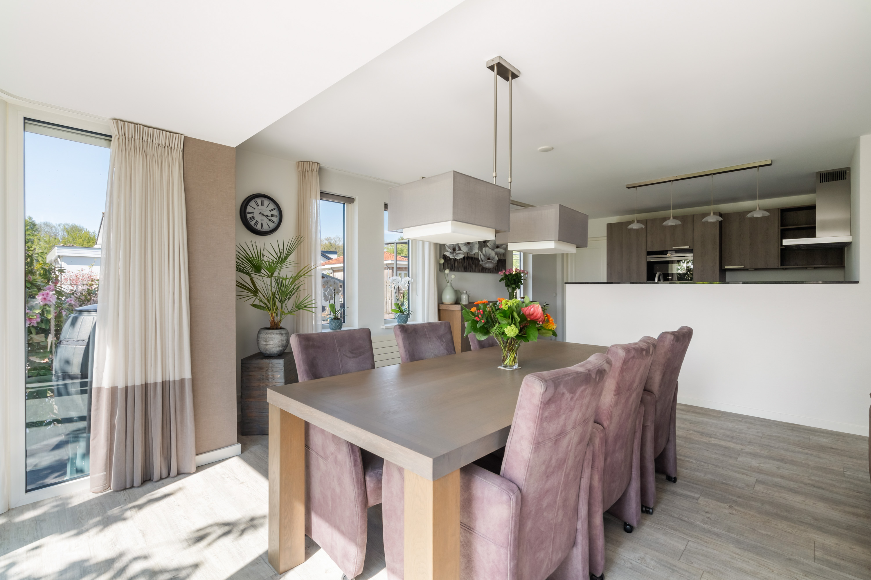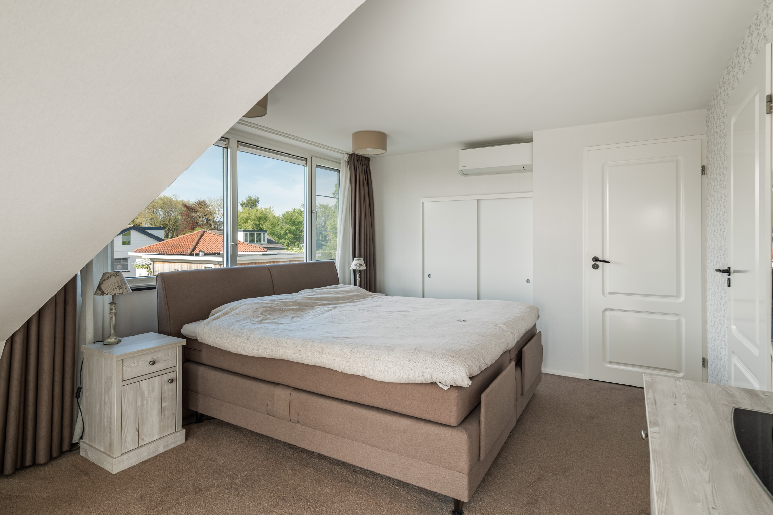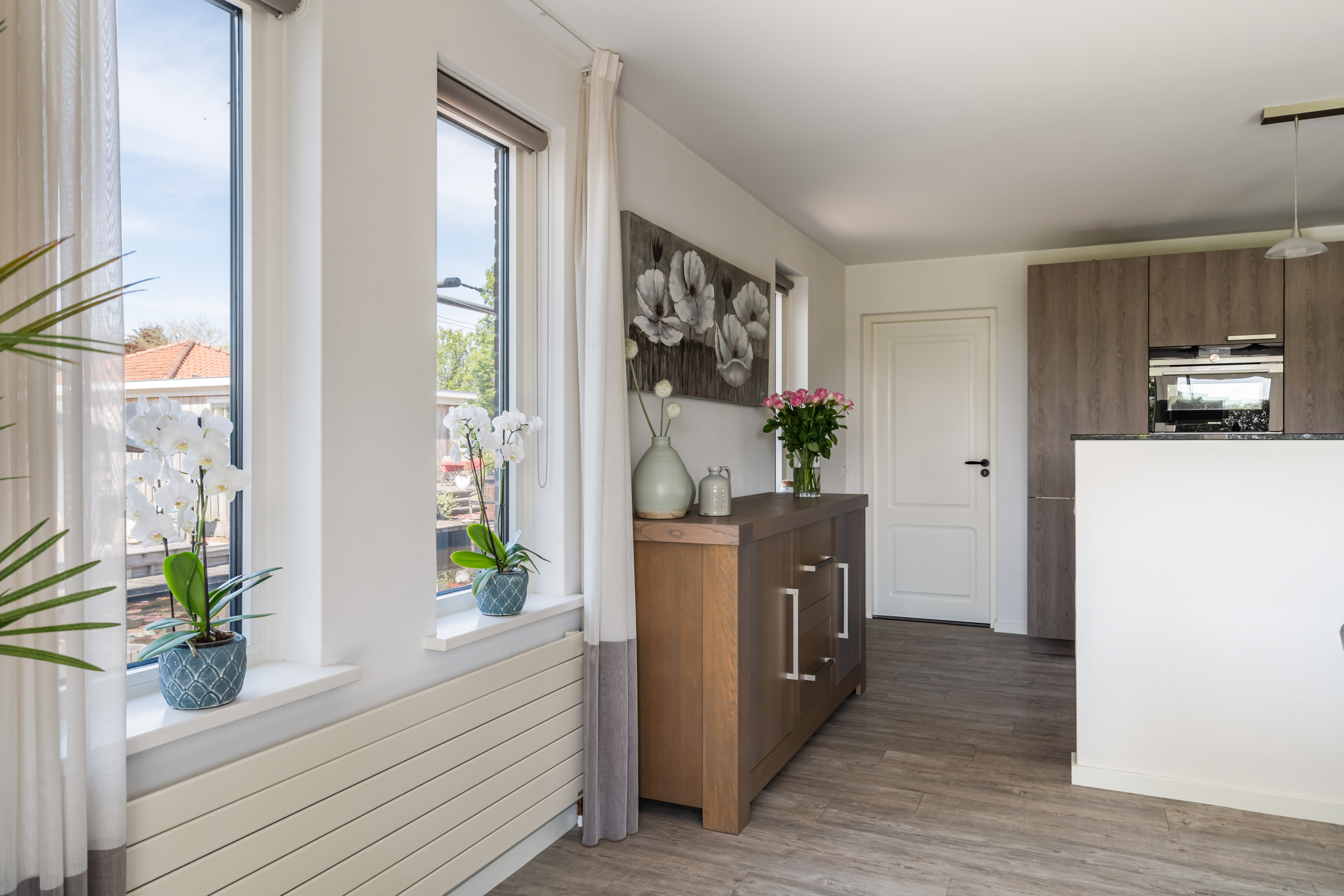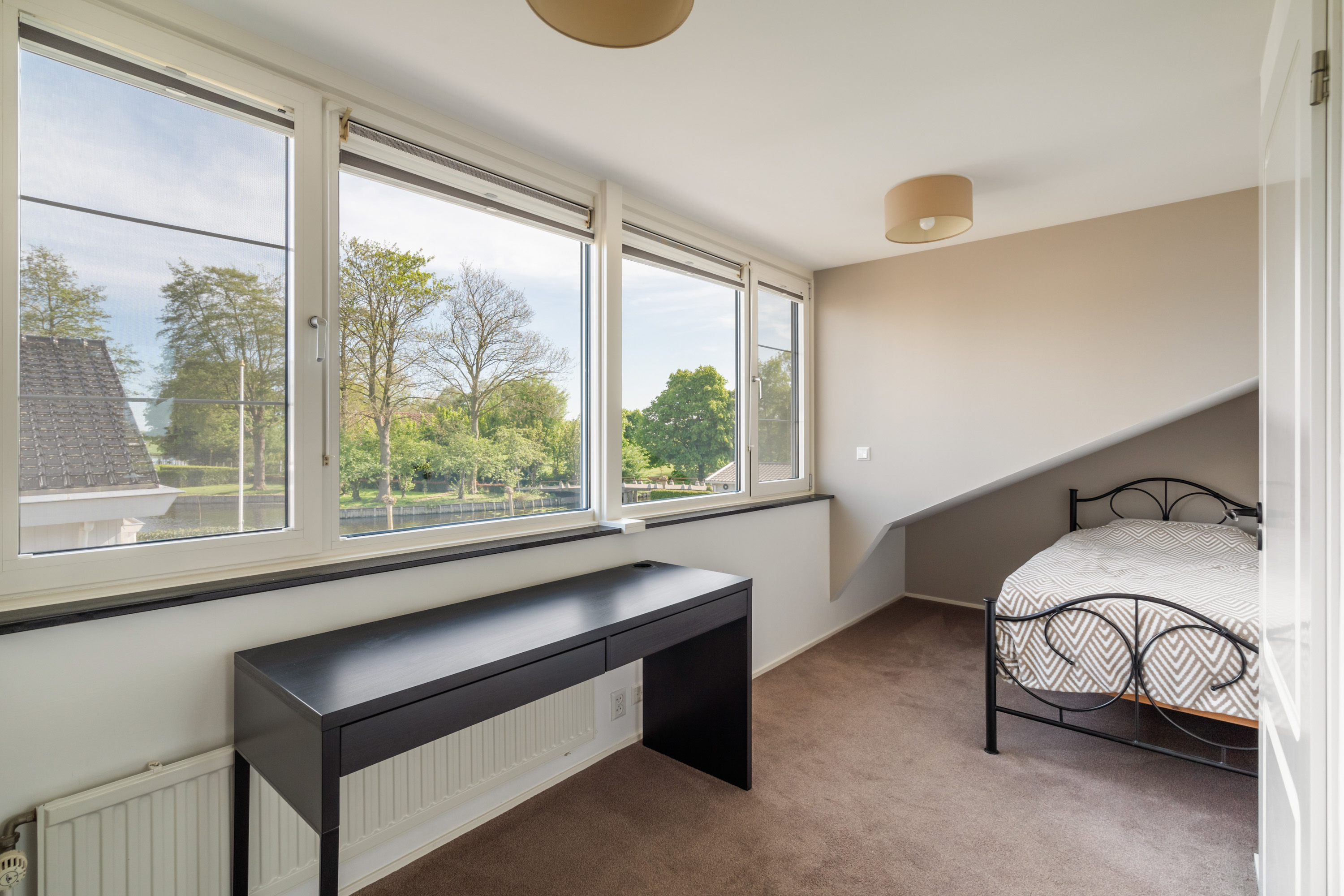 这栋位于Zevenhoven的独立住宅于Kromme Mijdrecht河畔,呈现罕见的私密性、自然归属感与现代高效性之间的极致平衡。167平方米的精心布局室内空间,设有三间卧室和一间浴室,配套1,006平方米的景观园地,水景、光影与精湛工艺共同勾勒出日常节奏。主入口置身于修剪有序的前花园,步入其间的明亮门厅,细腻用材与巧妙细节营造出静谧持久的居住氛围。灵活的双向入户设计提供私密性,非常适合在家办公与家庭生活的无缝切换,或从容迎接贵宾。起居室通透大窗、壁炉与可推拉的落地门使室内外融汇,开阔通达花园。现代开放式厨房配备Siemens厨电及Quooker热水龙头,邻接的大飘窗营造出临河用餐区。后部的家庭工作室享有充足自然光,适合专注办公或创意灵感激发。装修完善的地下室设有休息区、卧室及功能区,拓展了接待与生活空间。楼上两间主卧拥有广阔景致与舒适体验,其中一间直通独立阳台并配备空调。浴室处处体现用心设计,自然采光充沛,设施齐全。室外花园于2017年重新规划,设有加高硬木露台、焕新河岸和码头,让滨水生活轻松惬意——一处别出心裁的奢华别墅目前在Zevenhoven发售。带顶阳台全年舒适无忧,呼应宅邸对悠闲与全天候享受的承诺。私家安防停车位配备摄像头监控和电动汽车充电桩,出行无忧。全保温工作室储物间满足多元实用需求,同时以A级能效与20块太阳能板(年产约7000千瓦时)展现可持续理念。地暖、三重通风与升级的基础设施让住宅未来十足无忧。房产坐拥Groene Hart宁静美景,兼具宁谧与便捷,紧邻城镇配套设施,是持久河畔生活的理想邀请。