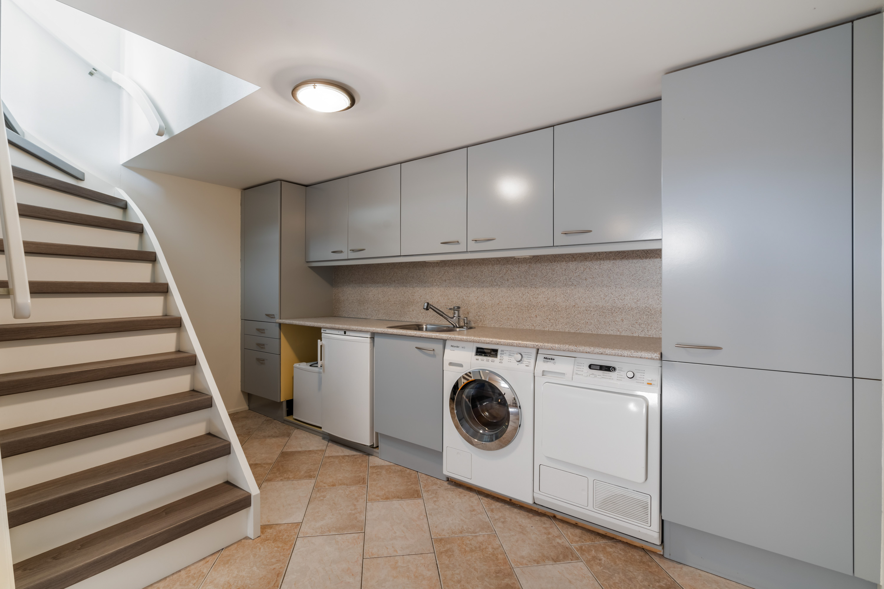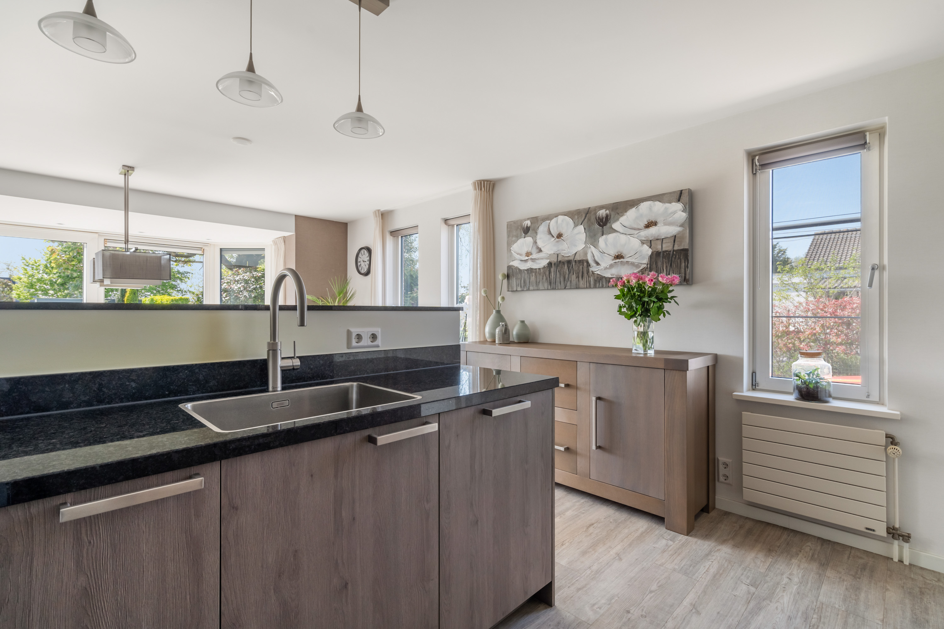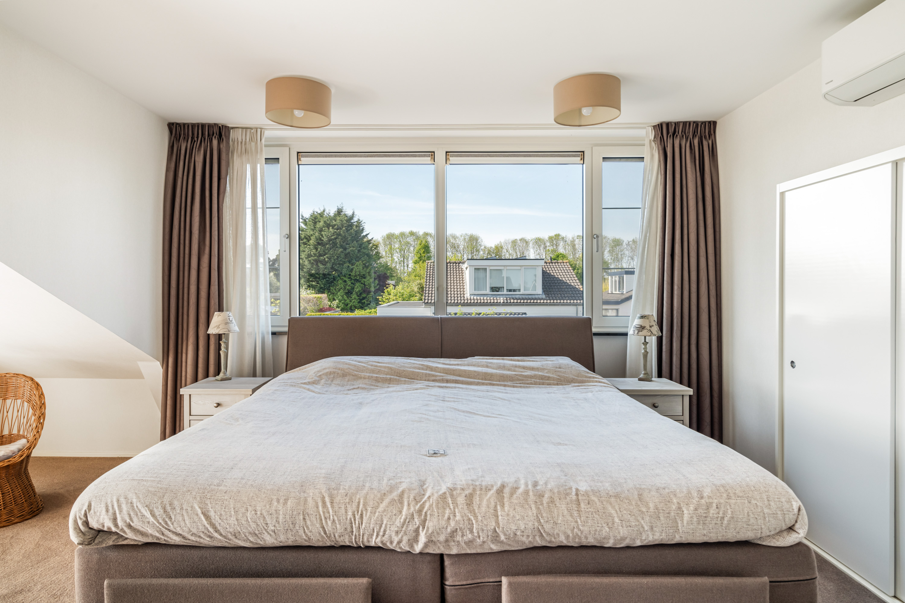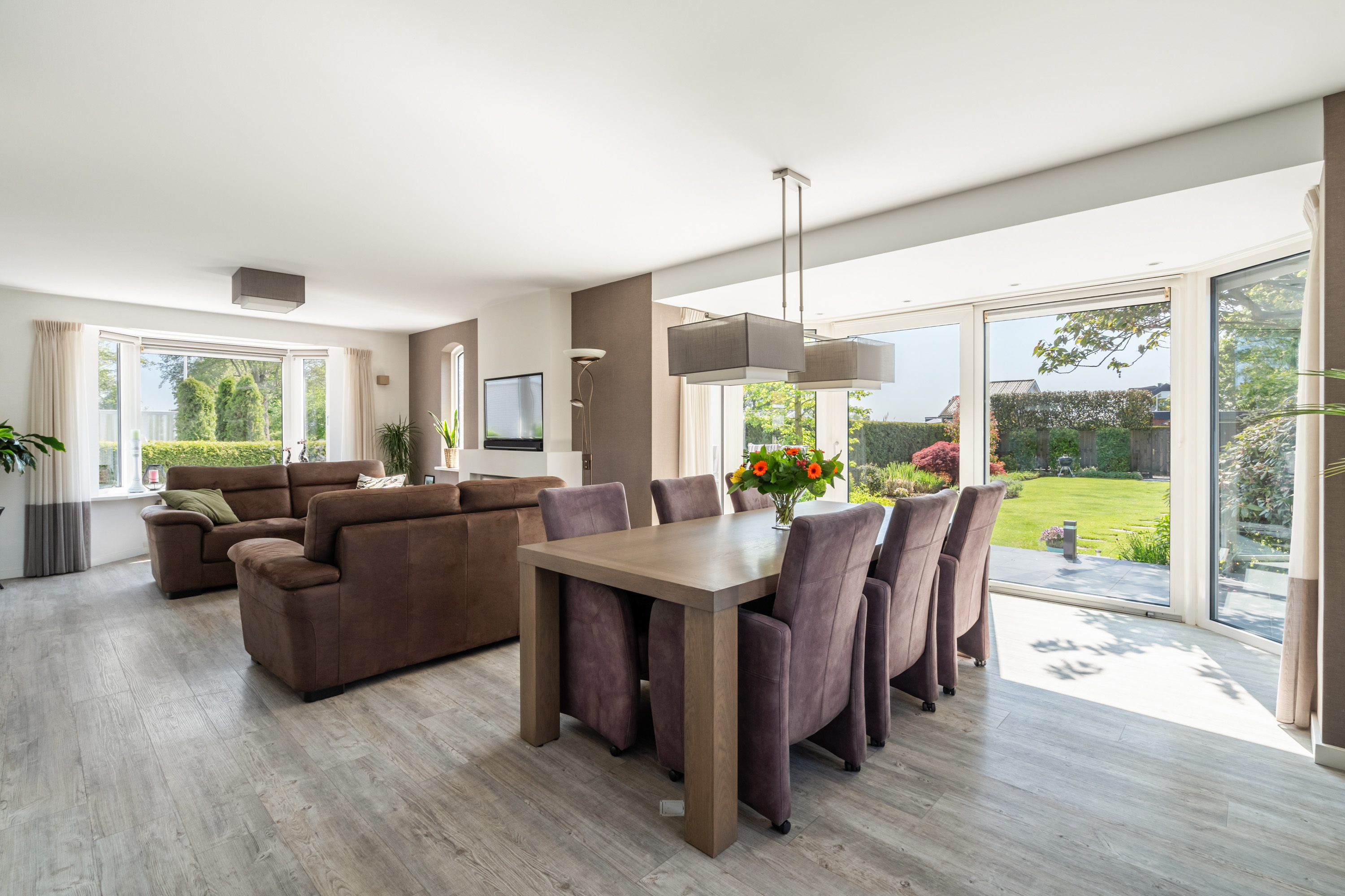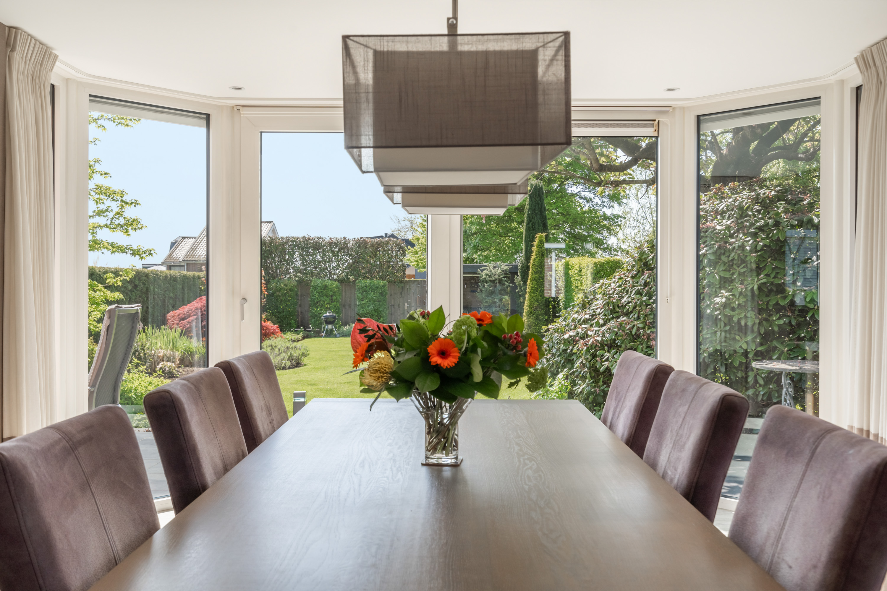这栋位于Zevenhoven的独立住宅于Kromme Mijdrecht河畔,呈现罕见的私密性、自然归属感与现代高效性之间的极致平衡。167平方米的精心布局室内空间,设有三间卧室和一间浴室,配套1,006平方米的景观园地,水景、光影与精湛工艺共同勾勒出日常节奏。主入口置身于修剪有序的前花园,步入其间的明亮门厅,细腻用材与巧妙细节营造出静谧持久的居住氛围。灵活的双向入户设计提供私密性,非常适合在家办公与家庭生活的无缝切换,或从容迎接贵宾。起居室通透大窗、壁炉与可推拉的落地门使室内外融汇,开阔通达花园。现代开放式厨房配备Siemens厨电及Quooker热水龙头,邻接的大飘窗营造出临河用餐区。后部的家庭工作室享有充足自然光,适合专注办公或创意灵感激发。装修完善的地下室设有休息区、卧室及功能区,拓展了接待与生活空间。楼上两间主卧拥有广阔景致与舒适体验,其中一间直通独立阳台并配备空调。浴室处处体现用心设计,自然采光充沛,设施齐全。室外花园于2017年重新规划,设有加高硬木露台、焕新河岸和码头,让滨水生活轻松惬意——一处别出心裁的奢华别墅目前在Zevenhoven发售。带顶阳台全年舒适无忧,呼应宅邸对悠闲与全天候享受的承诺。私家安防停车位配备摄像头监控和电动汽车充电桩,出行无忧。全保温工作室储物间满足多元实用需求,同时以A级能效与20块太阳能板(年产约7000千瓦时)展现可持续理念。地暖、三重通风与升级的基础设施让住宅未来十足无忧。房产坐拥Groene Hart宁静美景,兼具宁谧与便捷,紧邻城镇配套设施,是持久河畔生活的理想邀请。